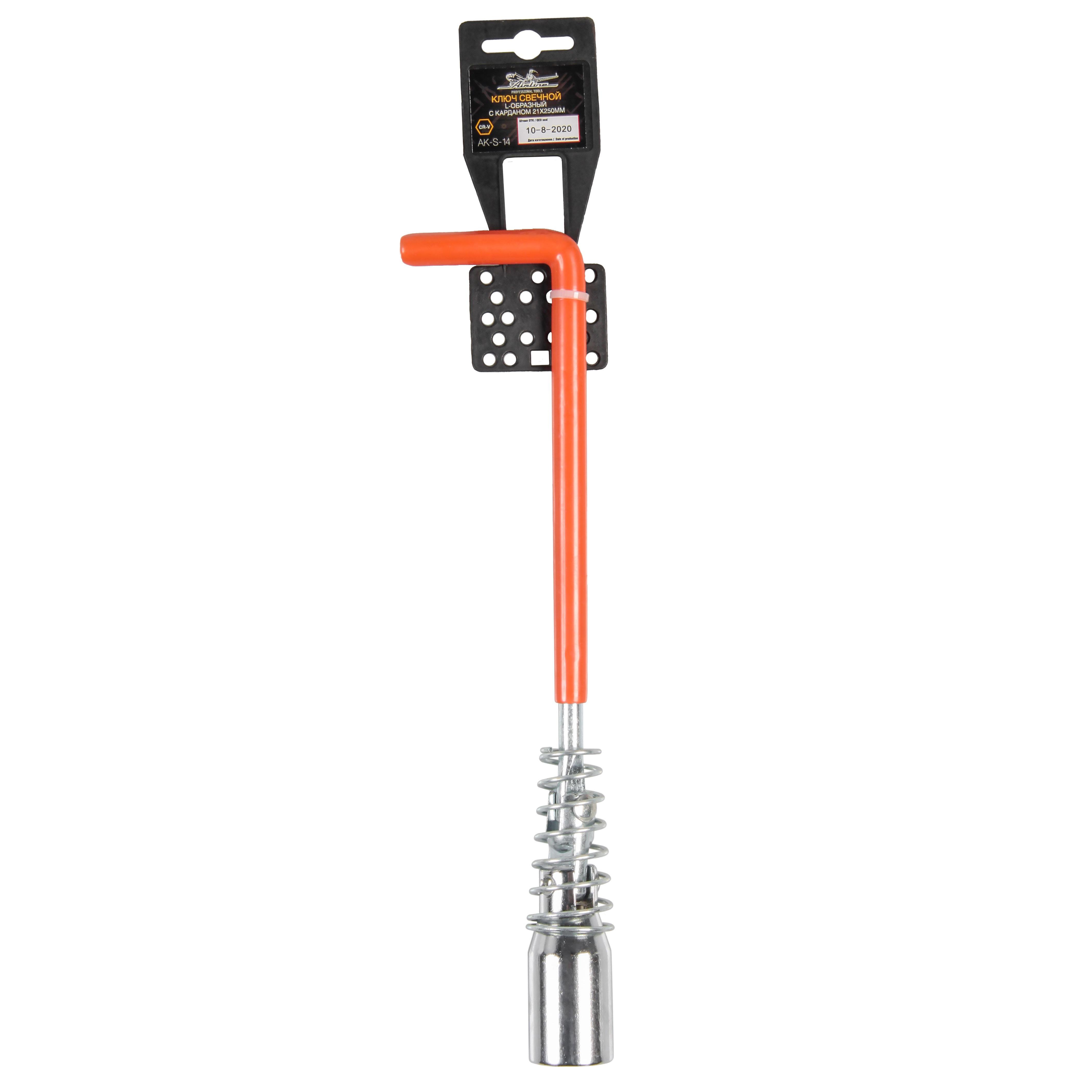 AK-S-14 AIRLINE Ключ свечной L-образный с карданом 21*250мм с резиновым фиксатором и пружиной (A
