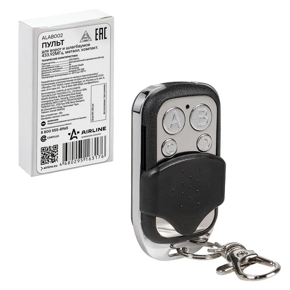 ALAB002 AIRLINE Пульт для ворот и шлагбаумов универс. копир. 433,92МГц, (Apollo, Came, BFT) мета