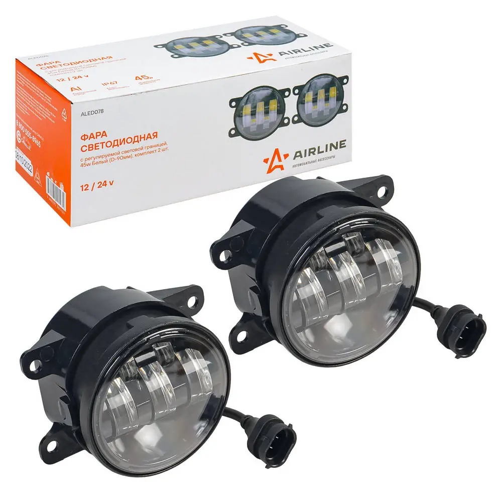 ALED078 AIRLINE Фара светодиодная "AIRLINE" 90 мм 45W (белый, регулир.световая граница) (2 шт)