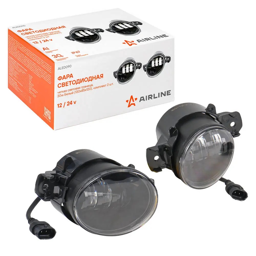 ALED090 AIRLINE Фара светодиод, четкая свет.граница, 30W Бел, 120х85х120, кмпл. 2 шт. (ALED090)