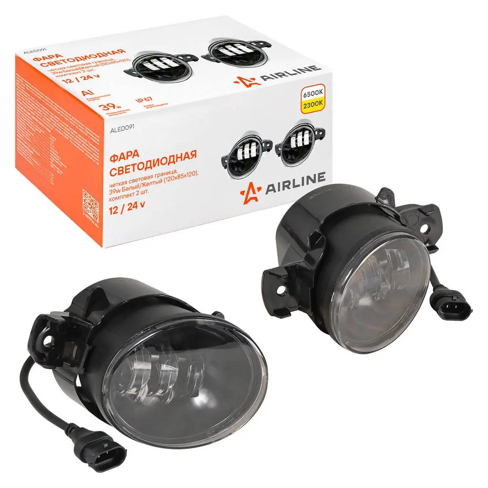 ALED091 AIRLINE Фара светодиод, четкая свет.граница, 39W Бел/Жел, 120х85х120, кмпл. 2 шт. (ALED0