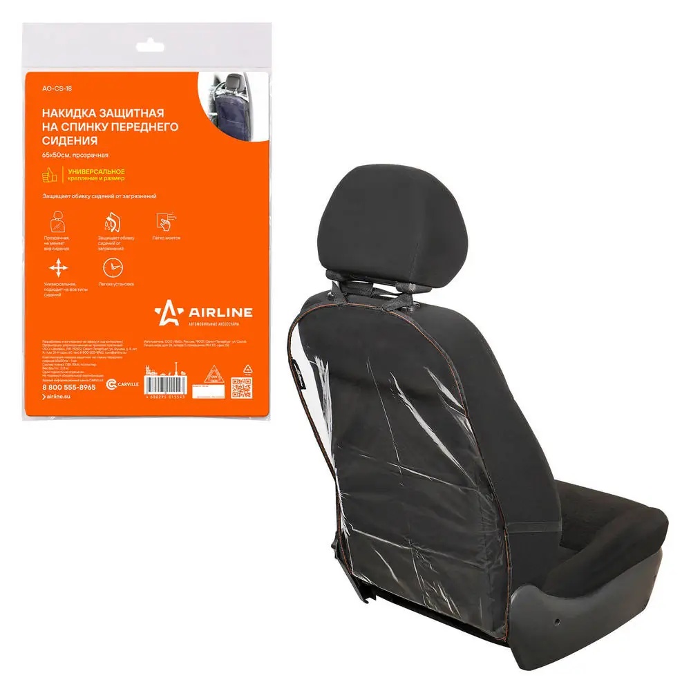 AO-CS-18 AIRLINE Защита спинки сиденья (65х50 см) "AIRLINE" прозрачный (от детских ног)