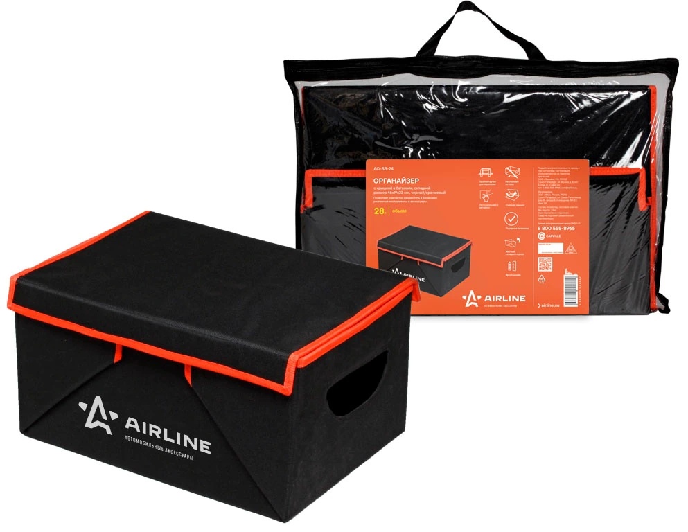 | Наименование | Органайзер в багажник 46х32х19см черно-оранжевый AIRLINE |