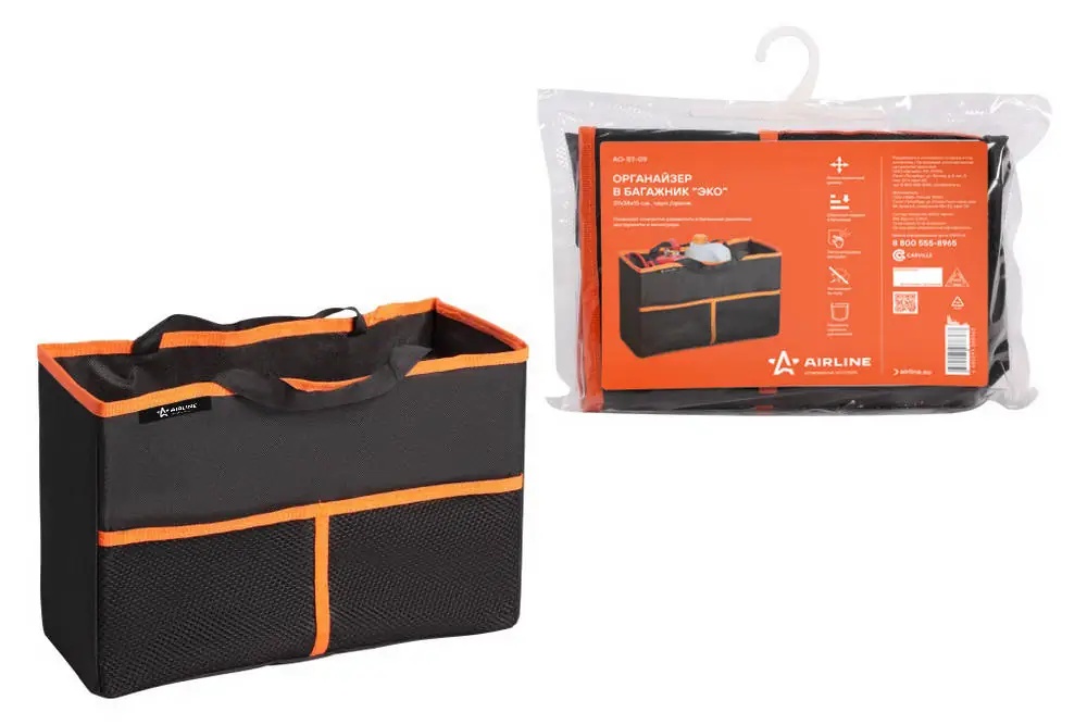 | Наименование | Органайзер-сумка в багажник (37х24х15 см) "AIRLINE" черный/оранжевый (складной) |