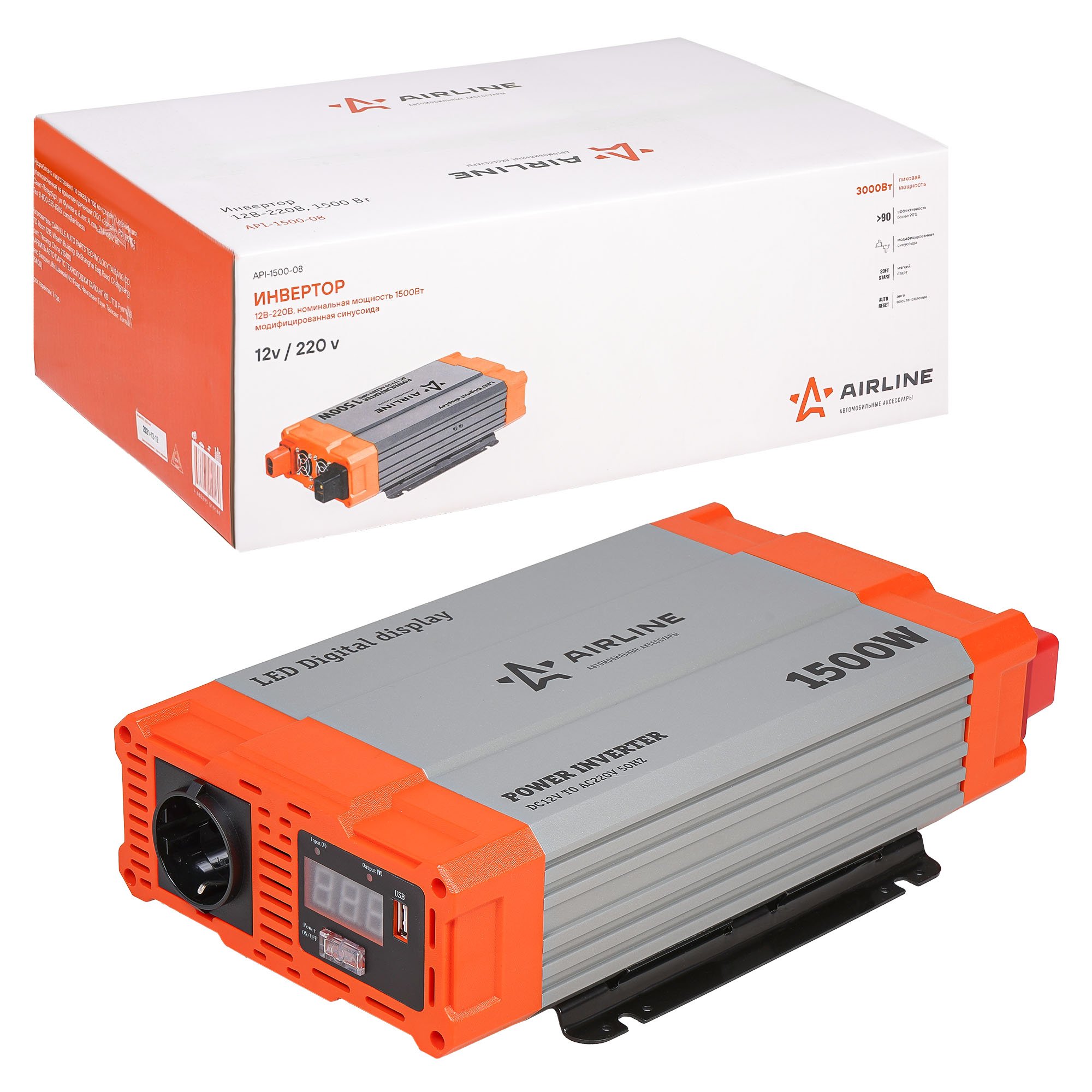 API150008 AIRLINE Преобразователь напряжения (инвертор) 12-220V 1500Вт AIRLINE