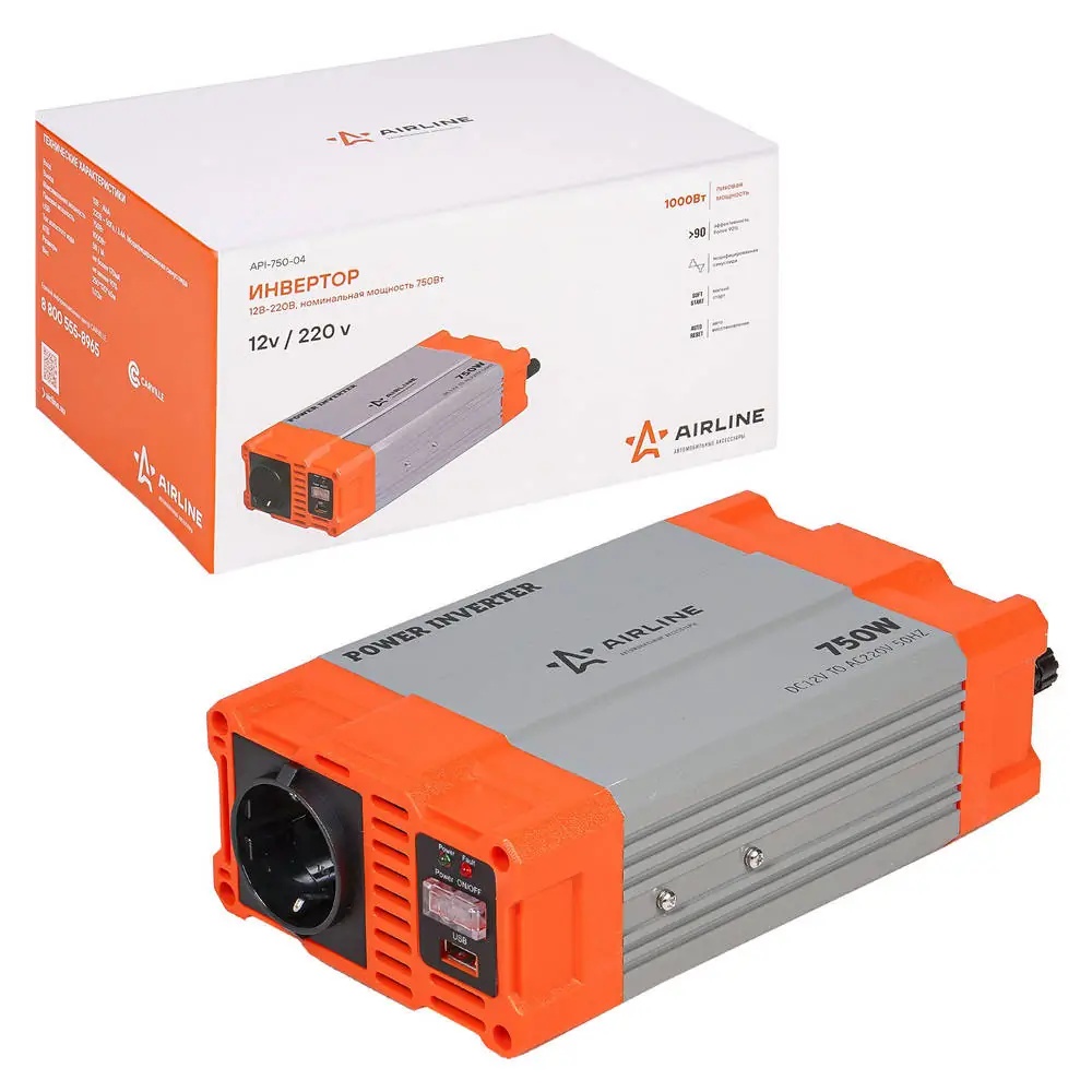 API-750-04 AIRLINE Преобразователь напряжения (инвертор) 12-220V 750Вт AIRLINE