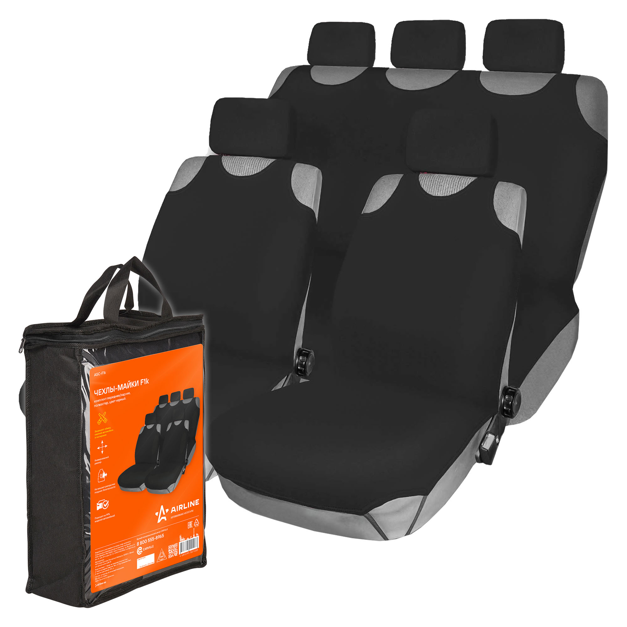 ASC-F1K AIRLINE Авточехлы (майка) полиэстер черные (8 предм.) AIRLINE