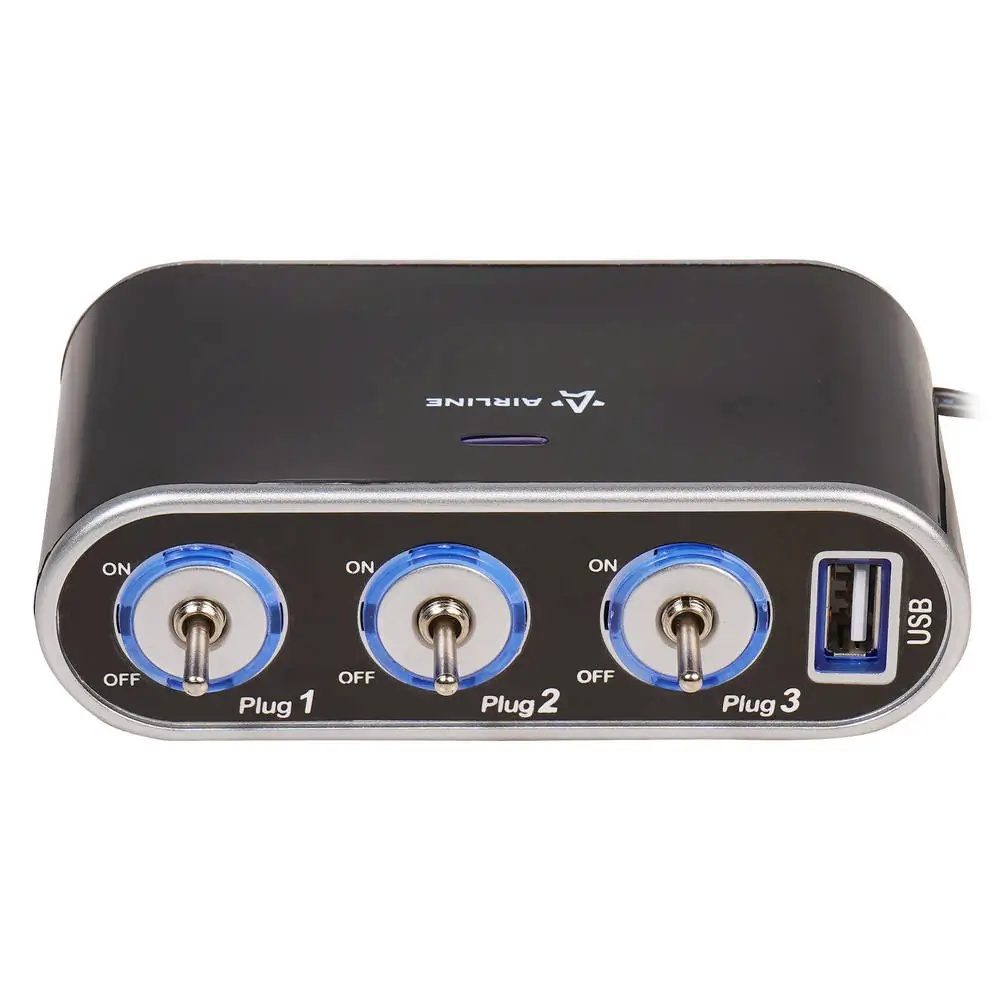 | Наименование | Разветвитель прикуривателя 3-х гнездовой 12V 1USB с удлинителем AIRLINE |