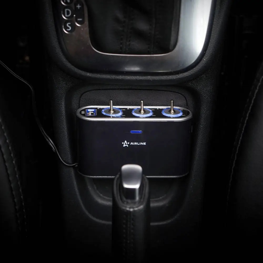 ASP-3S-15 AIRLINE Разветвитель прикуривателя 3-х гнездовой 12V 1USB с удлинителем AIRLINE