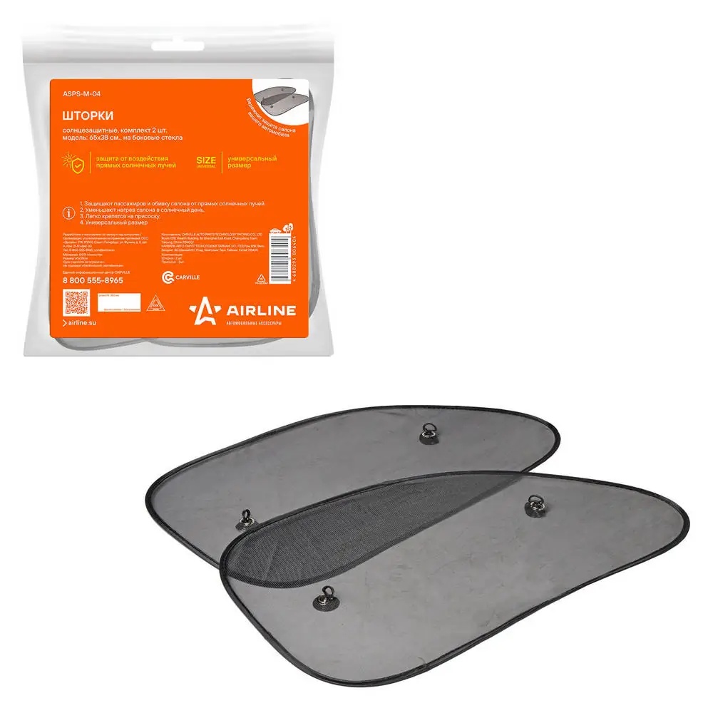 ASPS-M-04 AIRLINE Шторка автомобильная для боковых стекол 65х38см на присоске полиэстр 2шт. AIRLIN