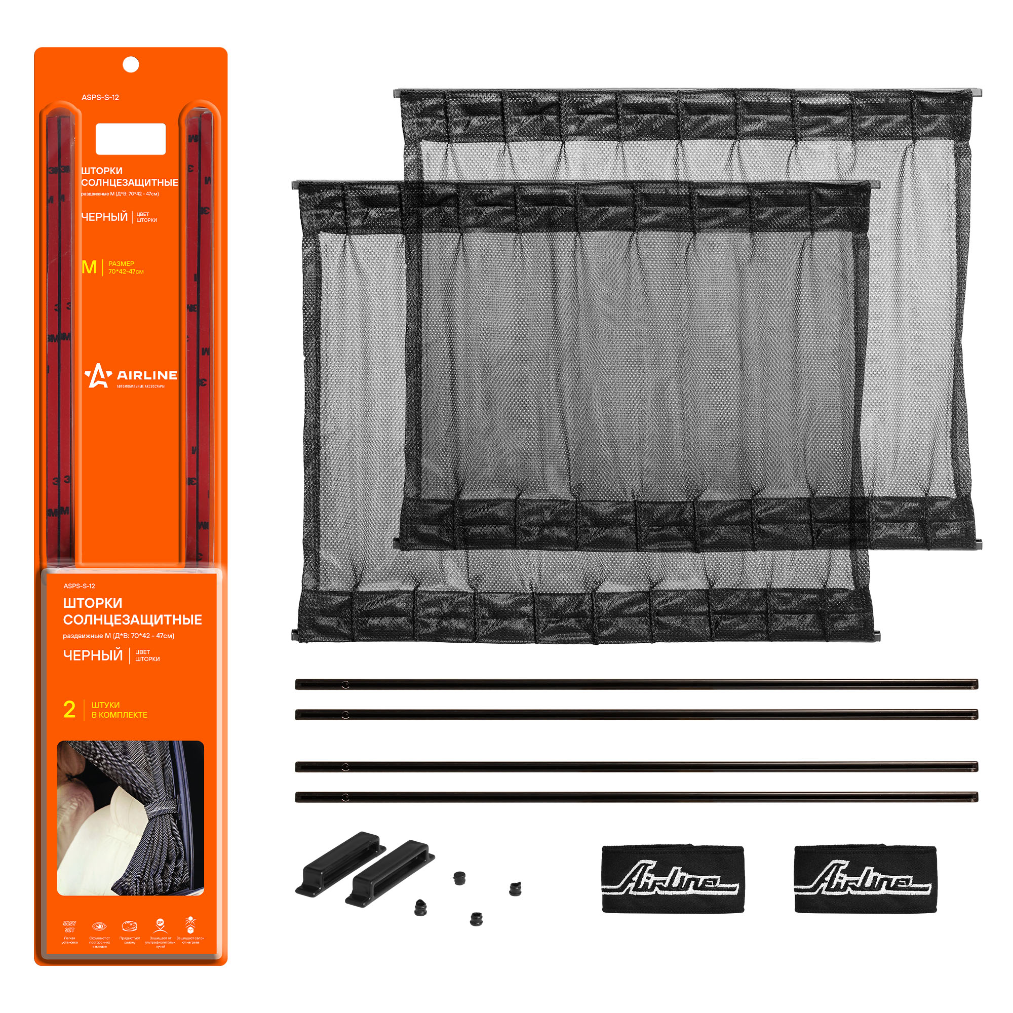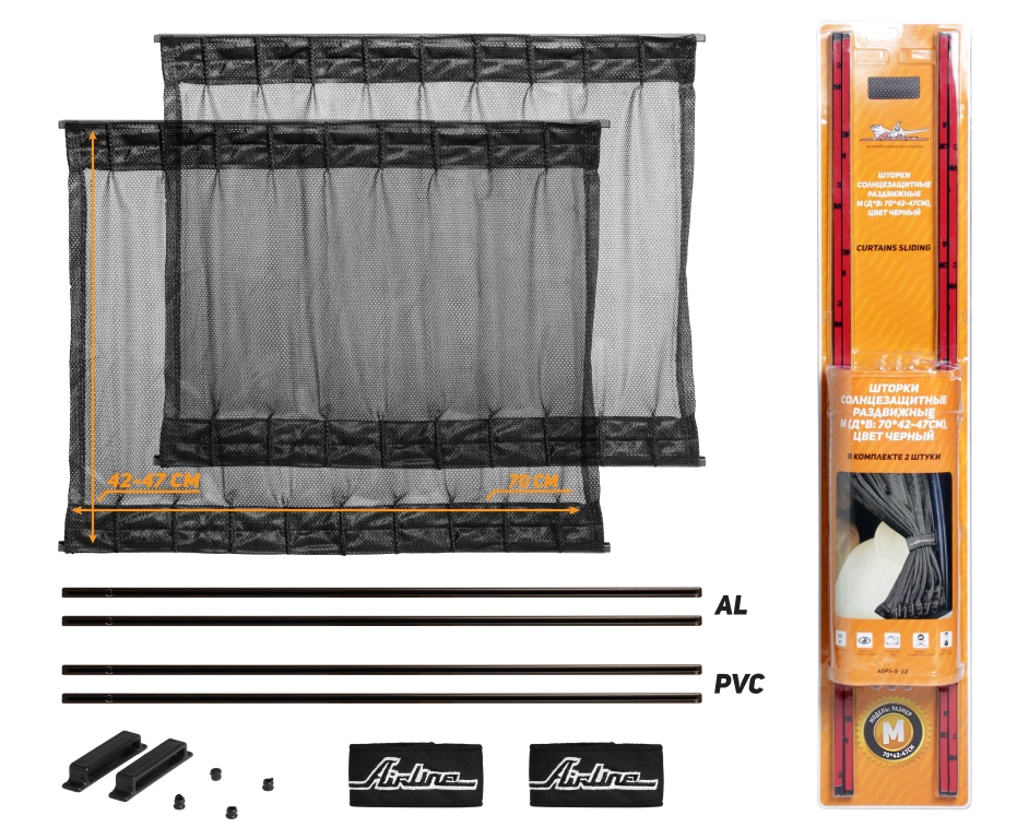 ASPS-S-12 AIRLINE Шторки солнцезащитные раздвижные M (Д*В: 70*42-47см), цвет черный (ASPS-S-12)