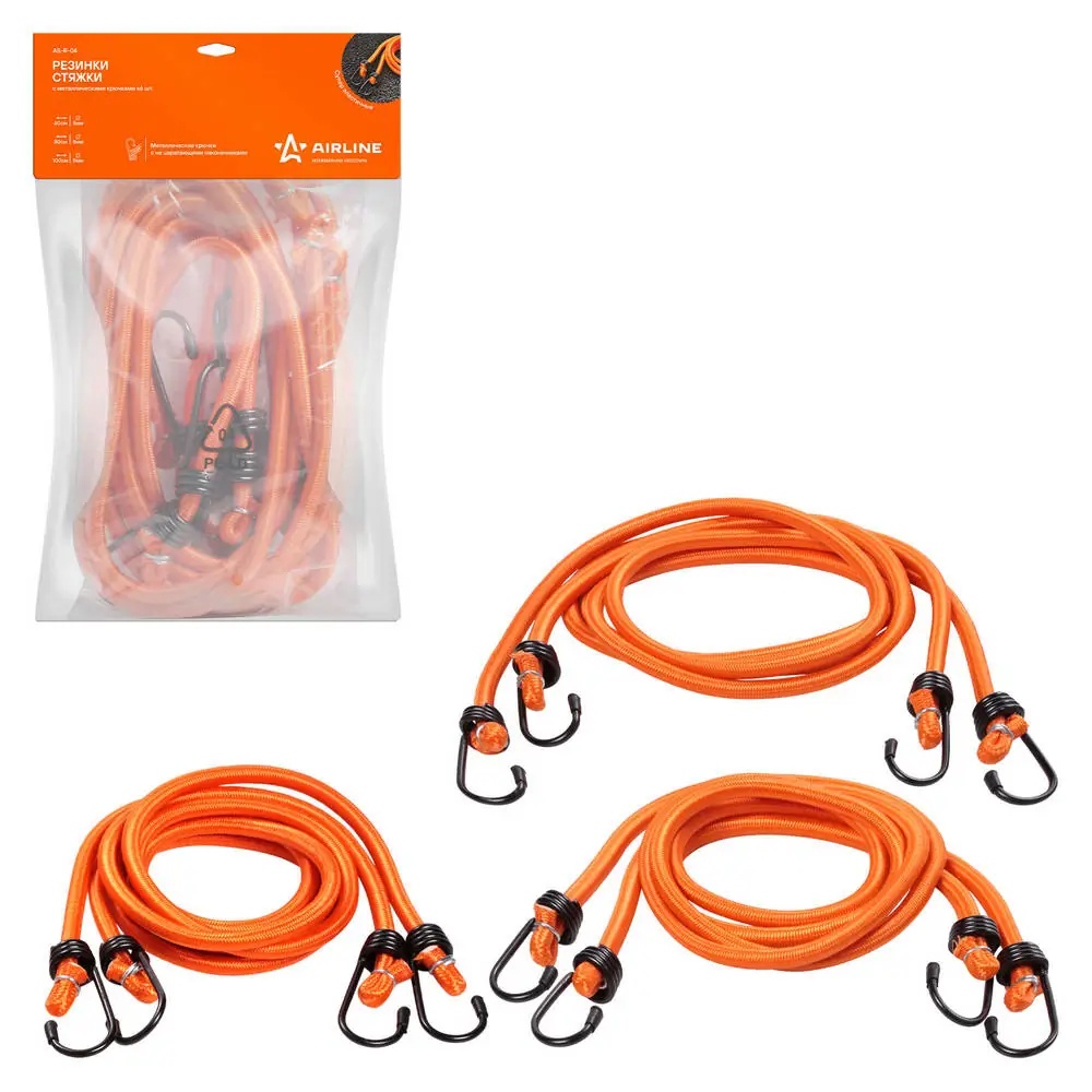 AS-R-04 AIRLINE Набор резинок 6 шт. в компл.: 2 шт.-60см.2 шт.-80см.2 шт.-100см.D-8 мм.(метал. к