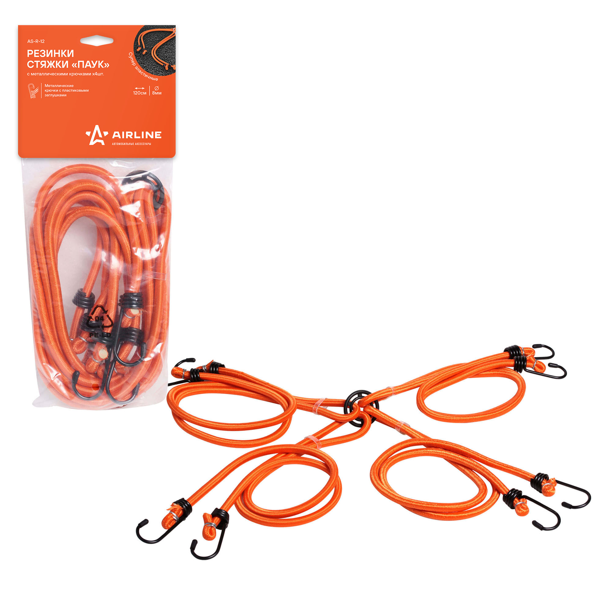 AS-R-12 AIRLINE Жгут крепления груза эластичный 1.2мх8мм (4шт.) AIRLINE