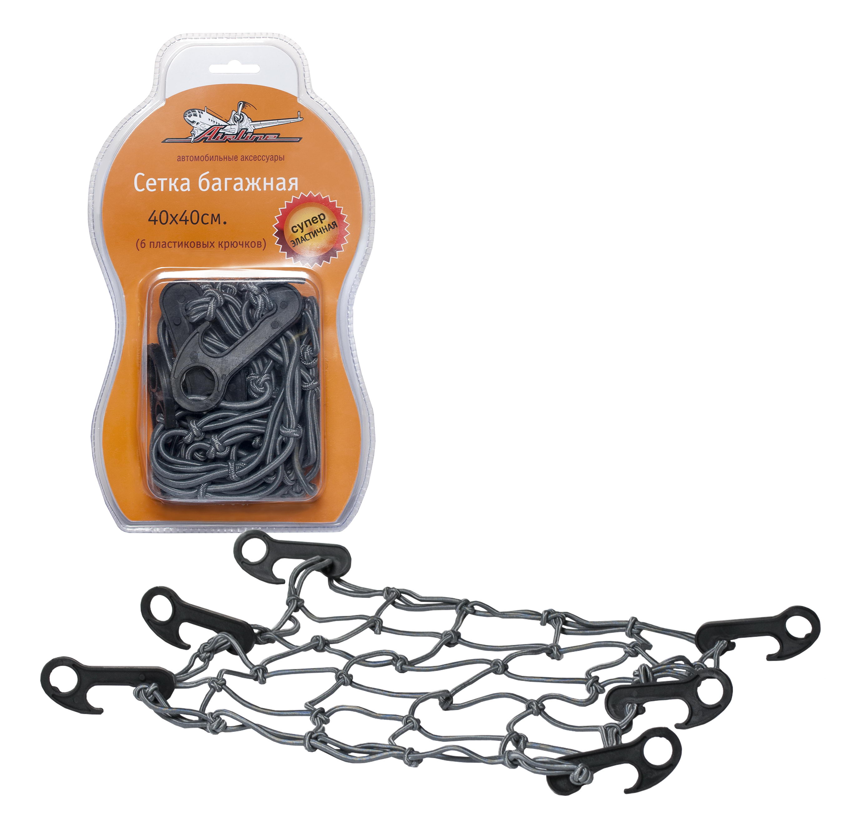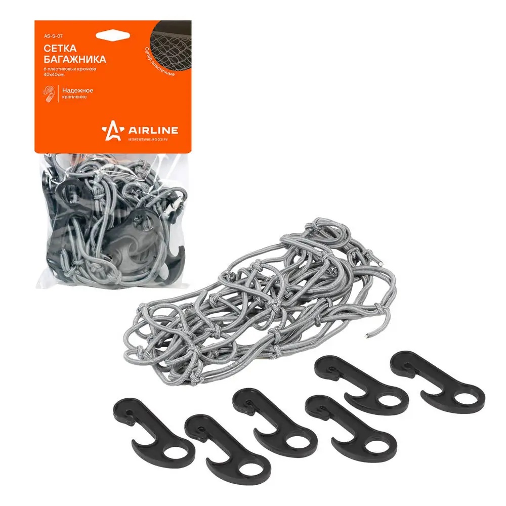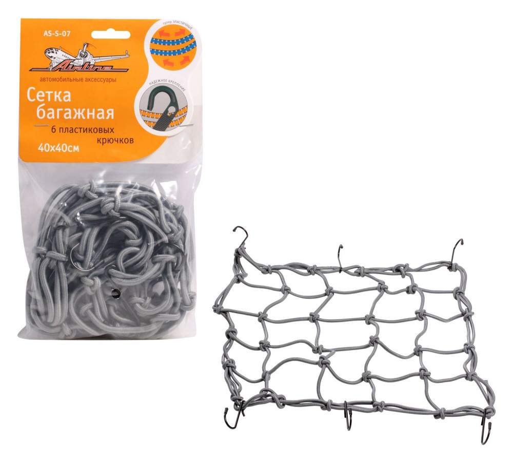 | Наименование | Сетка в багажник 40х40см (6 пластмассовых крючков) AIRLINE |