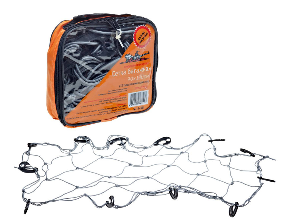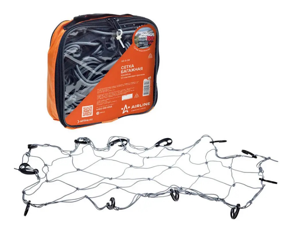 | Наименование | Сетка в багажник 90х130см (12 пластмассовых крючков) AIRLINE |