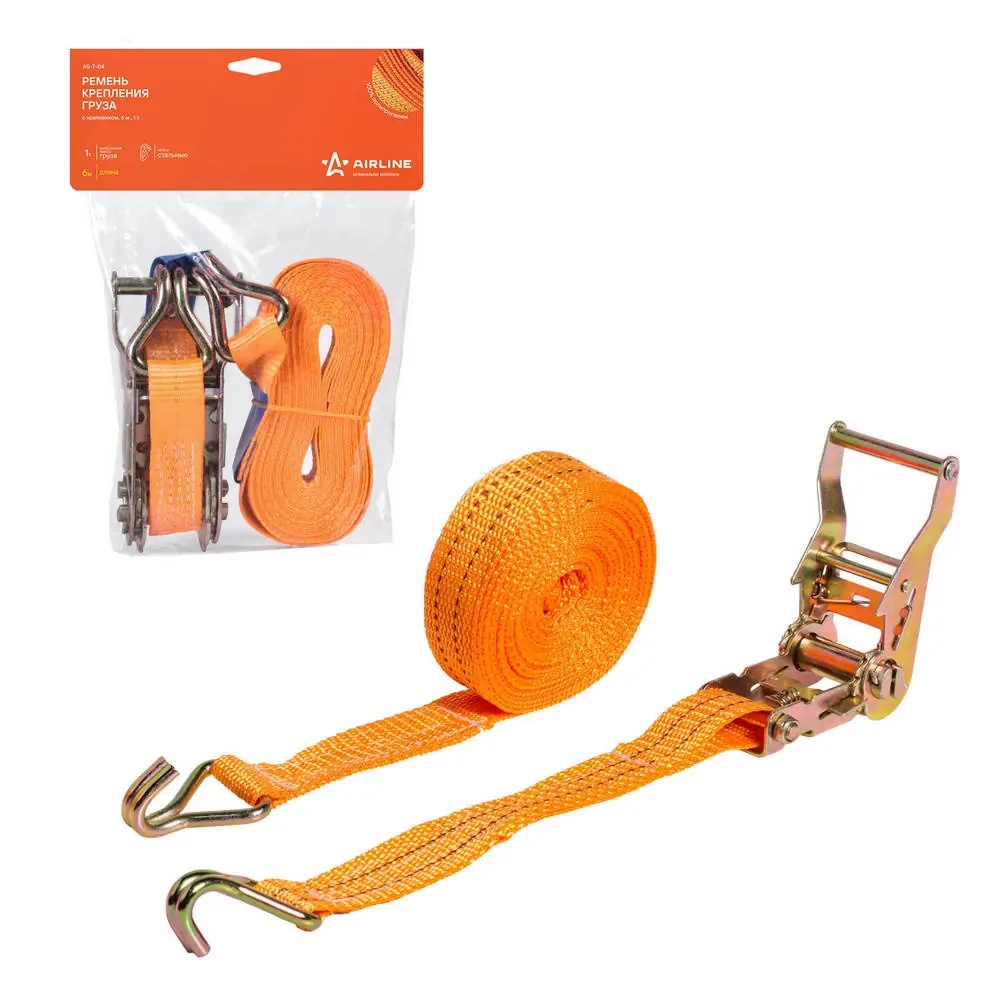 AS-T-04 AIRLINE Ремень крепления груза с храповиком 6м, 1т AS-T-04