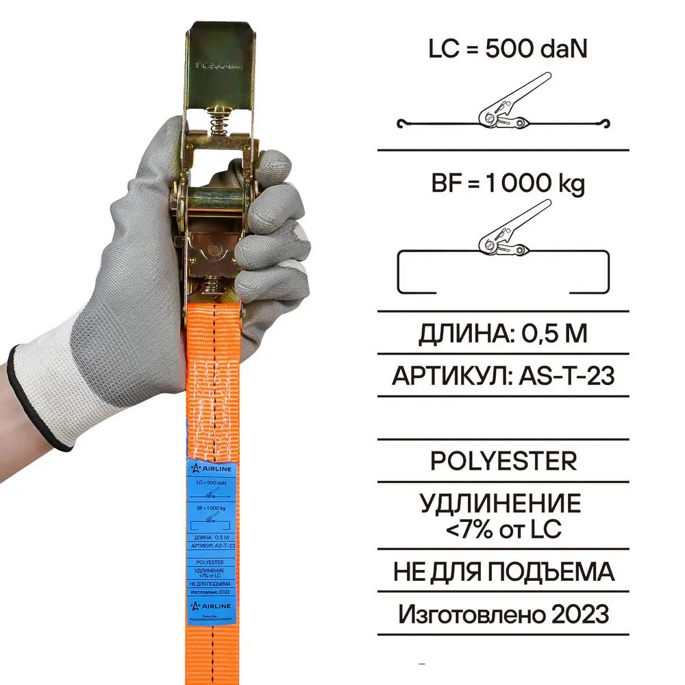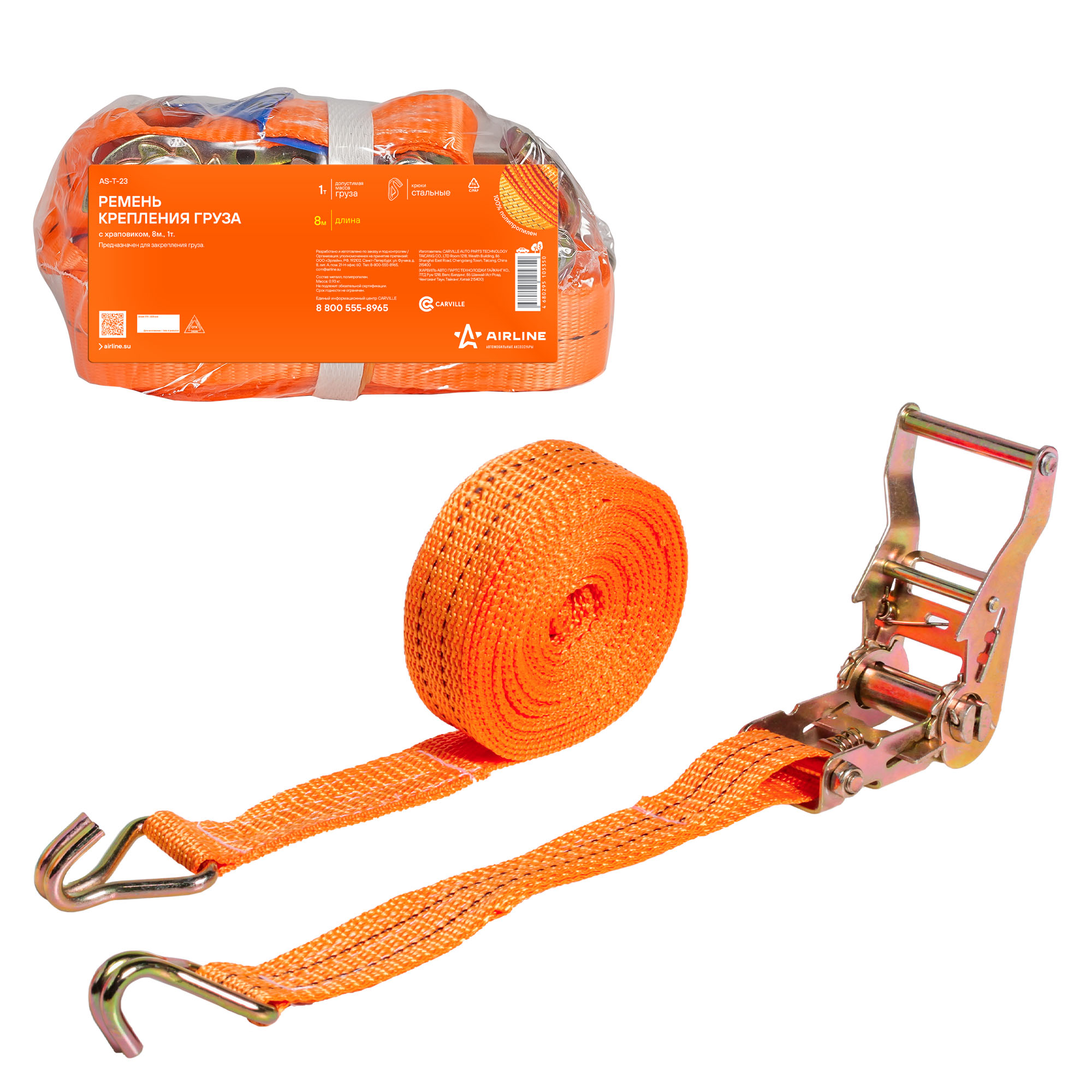 AST23 AIRLINE Ремень крепления груза (8 м) 1 т "AIRLINE" (с храповиком)