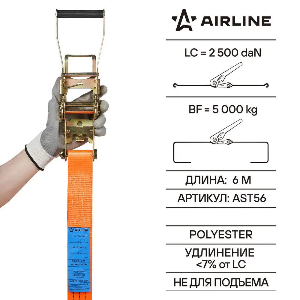AST56 AIRLINE Ремень крепления груза с храповиком, кольцевой 5 т, 6 м (AST56)