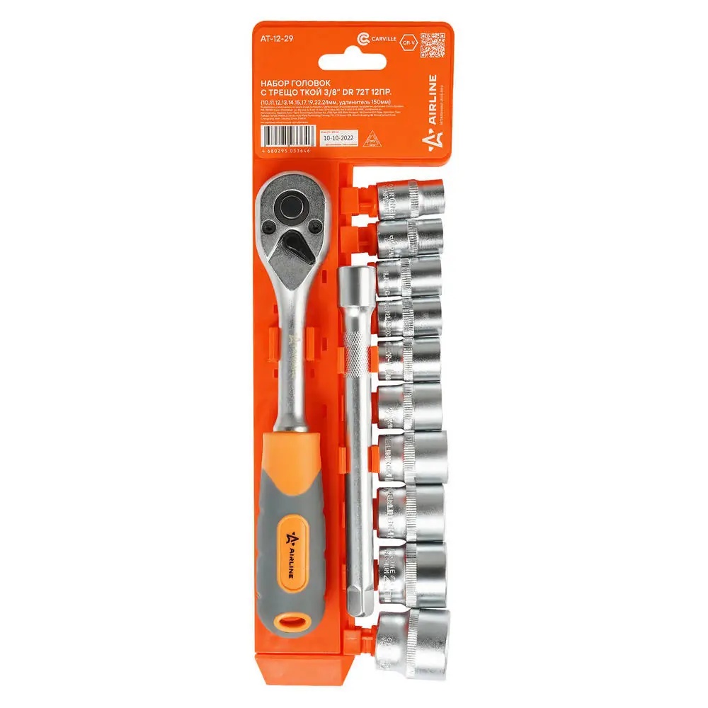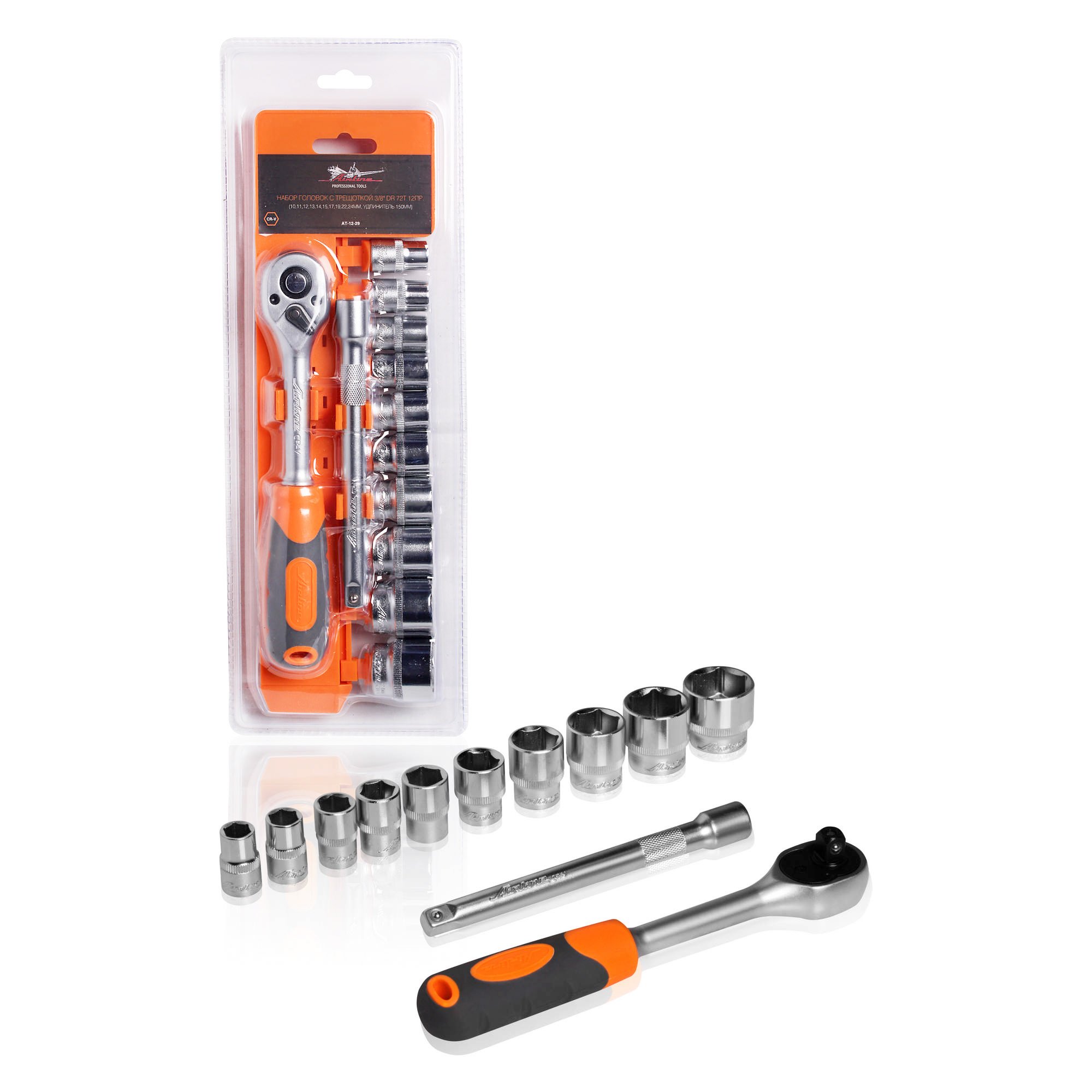 AT-12-29 AIRLINE Набор головок (12 предметов) "AIRLINE" (3/8", с трещоткой, удлинитель 150 мм)