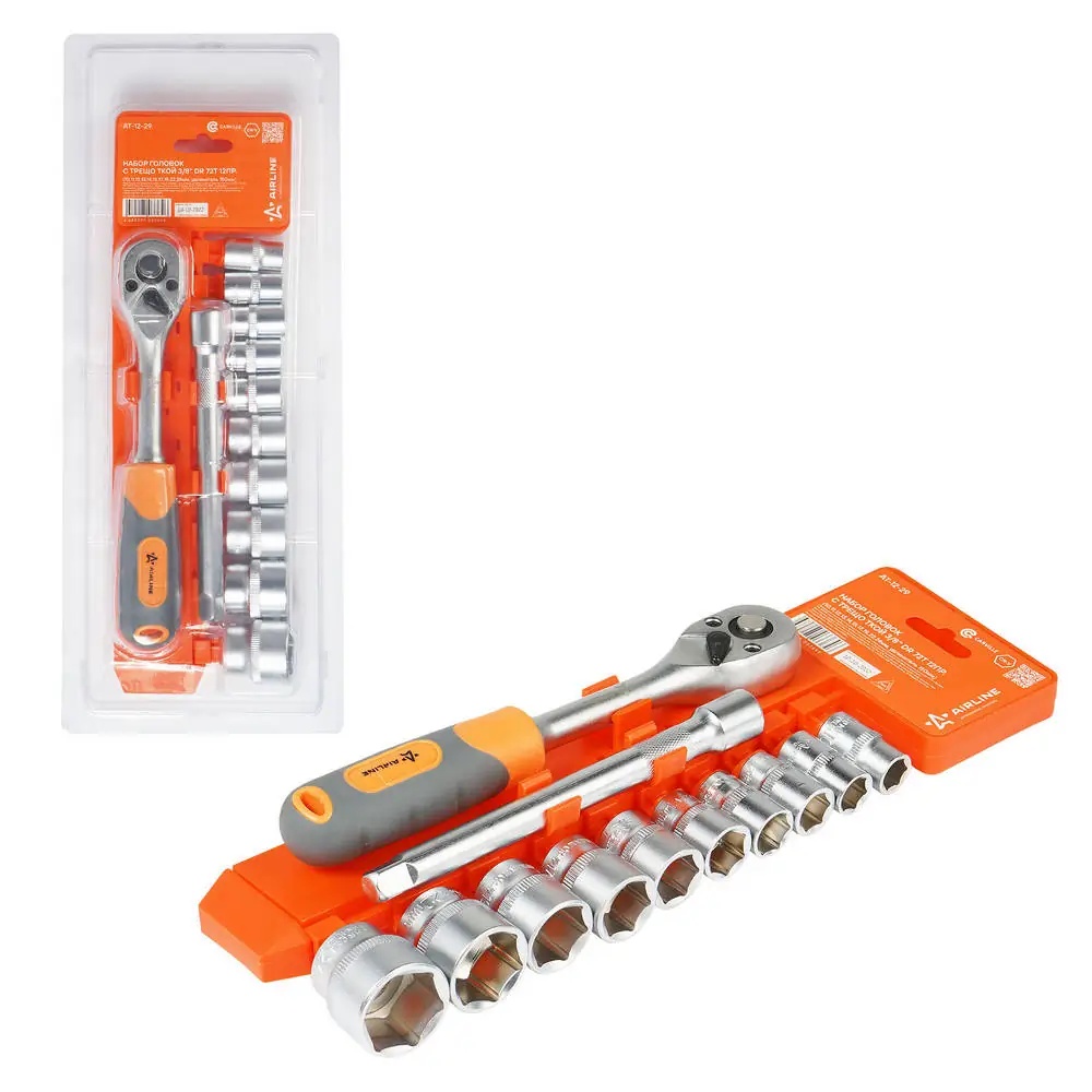 | Наименование | Набор головок (12 предметов) "AIRLINE" (3/8", с трещоткой, удлинитель 150 мм) |