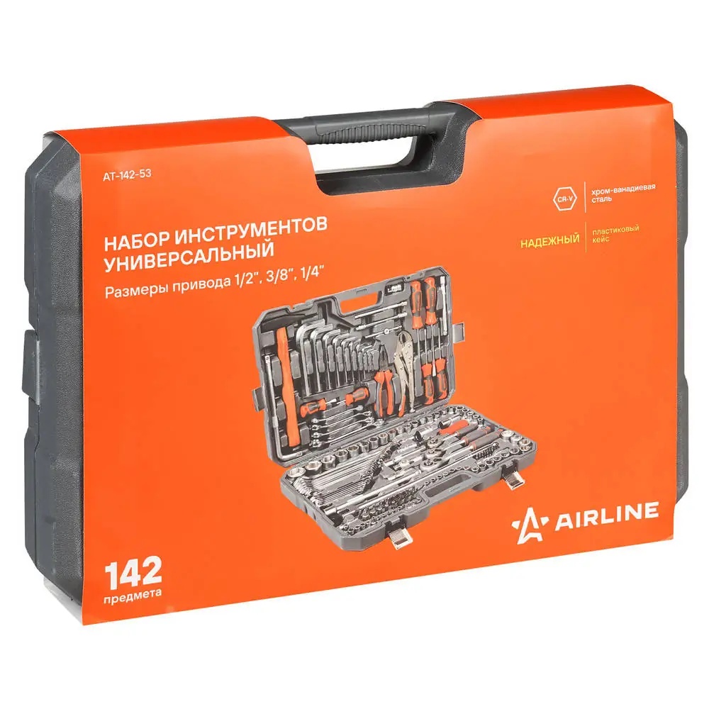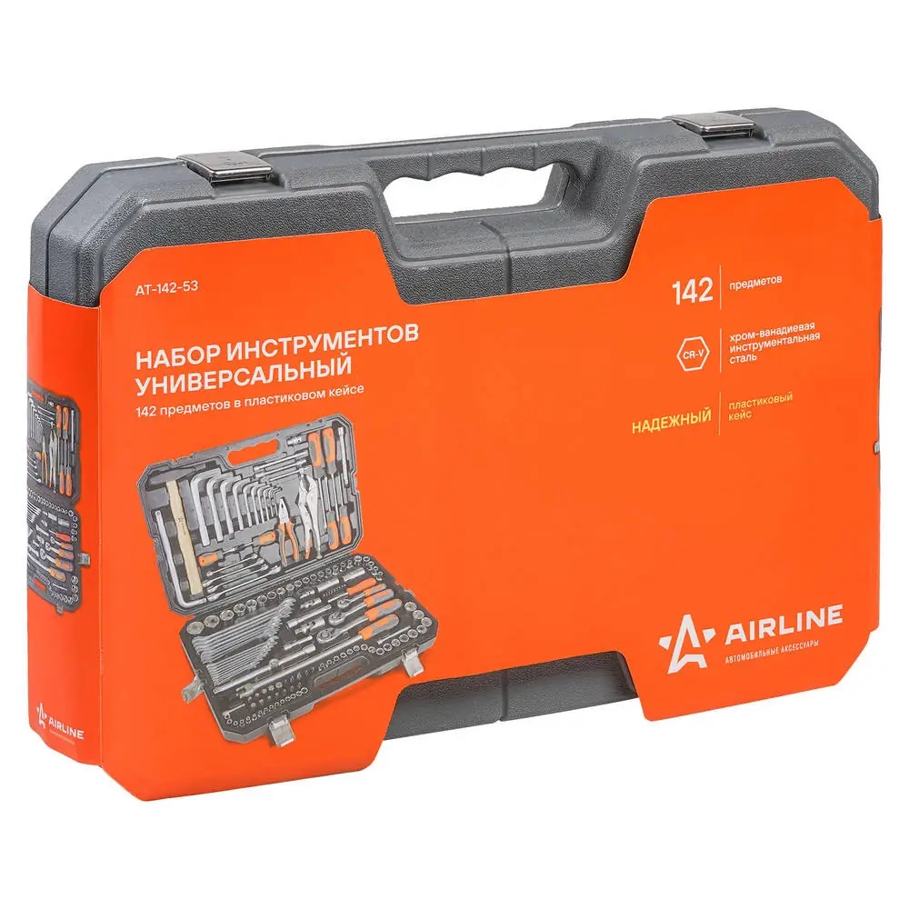 AT-142-53 AIRLINE Набор инструментов универсальный 142 предмета, пласт.кейс (AT-142-53)