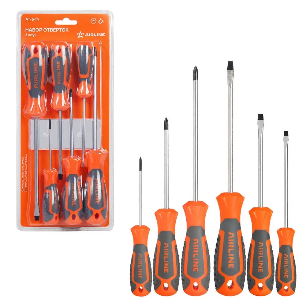 AT-6-14 AIRLINE Набор отверток 6 предметов (SL4*0.8*100мм,SL5.5*1*100мм,SL6.5*1.2*150мм,PH0*75мм