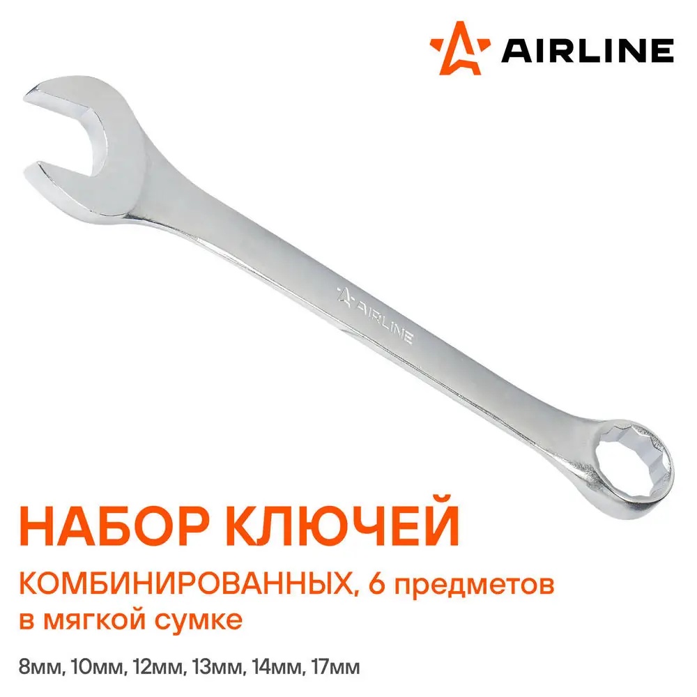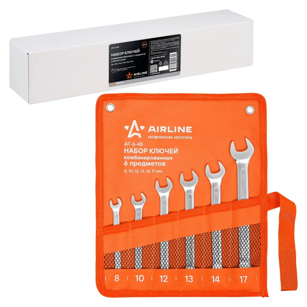 AT645 AIRLINE Набор ключей комбинированных PRO 6пр. (8-17мм) сумка (AT-6-45)