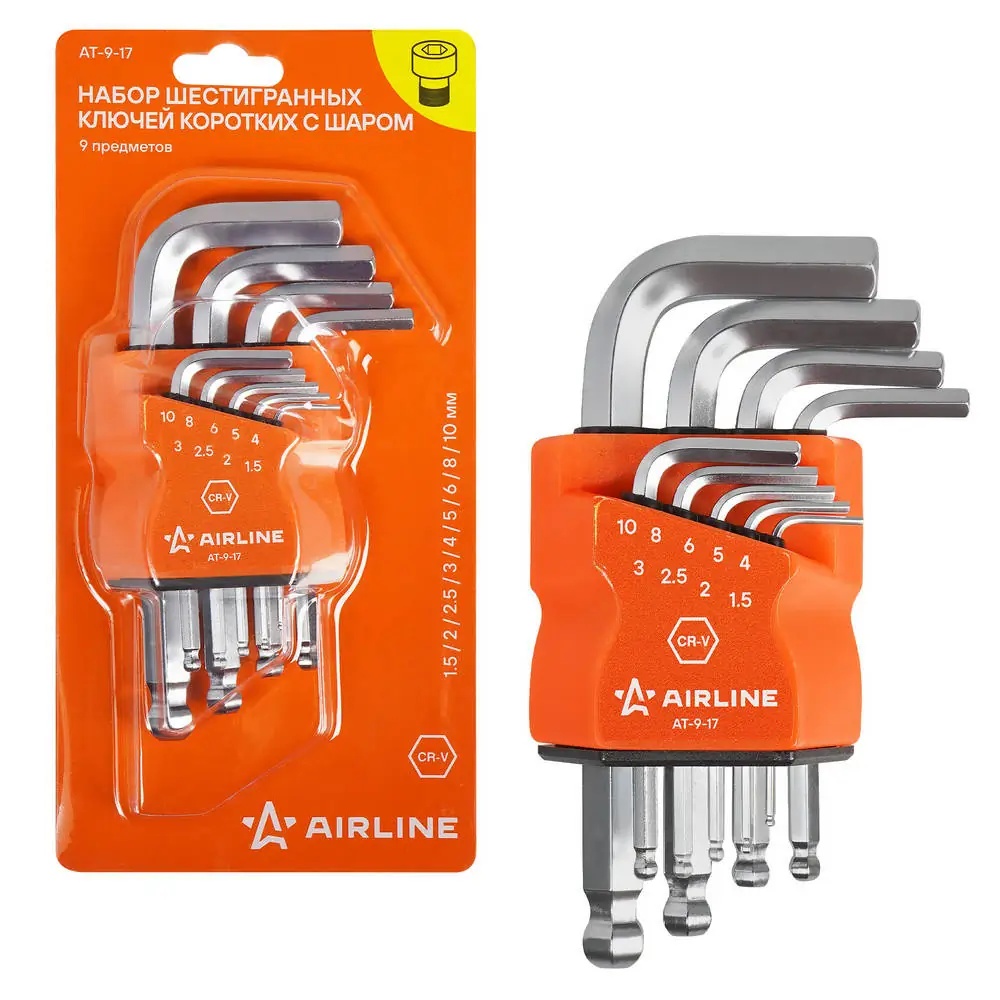 AT917 AIRLINE Набор шестигранных ключей коротких инбус с шаром 9 предметов (1.5,2,2.5,3,4,5,6,