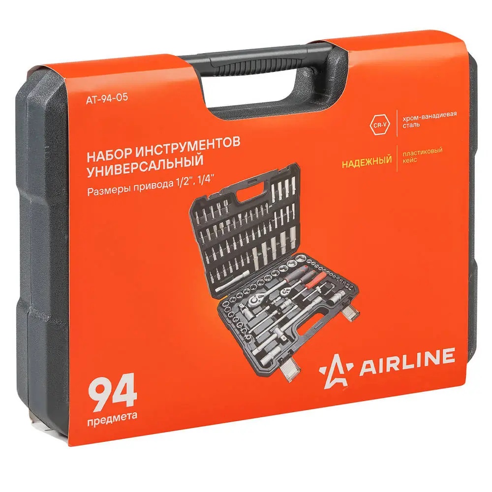 AT-94-05 AIRLINE Набор инструментов универсальный 94 предмета, пласт.кейс (AT-94-05)