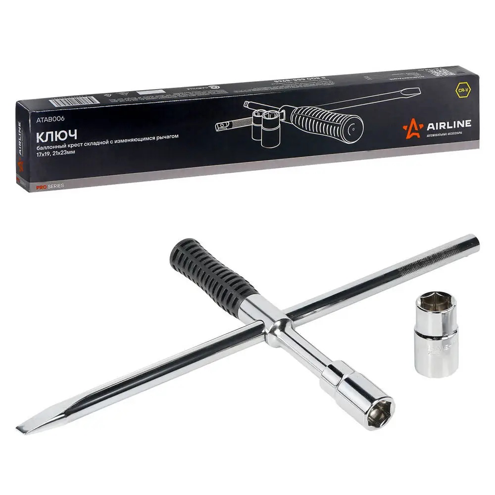 | Наименование | Ключ баллонный крестовой (17, 19, 21, 23) "AIRLINE" PRO (складной, с изменяющимс |
