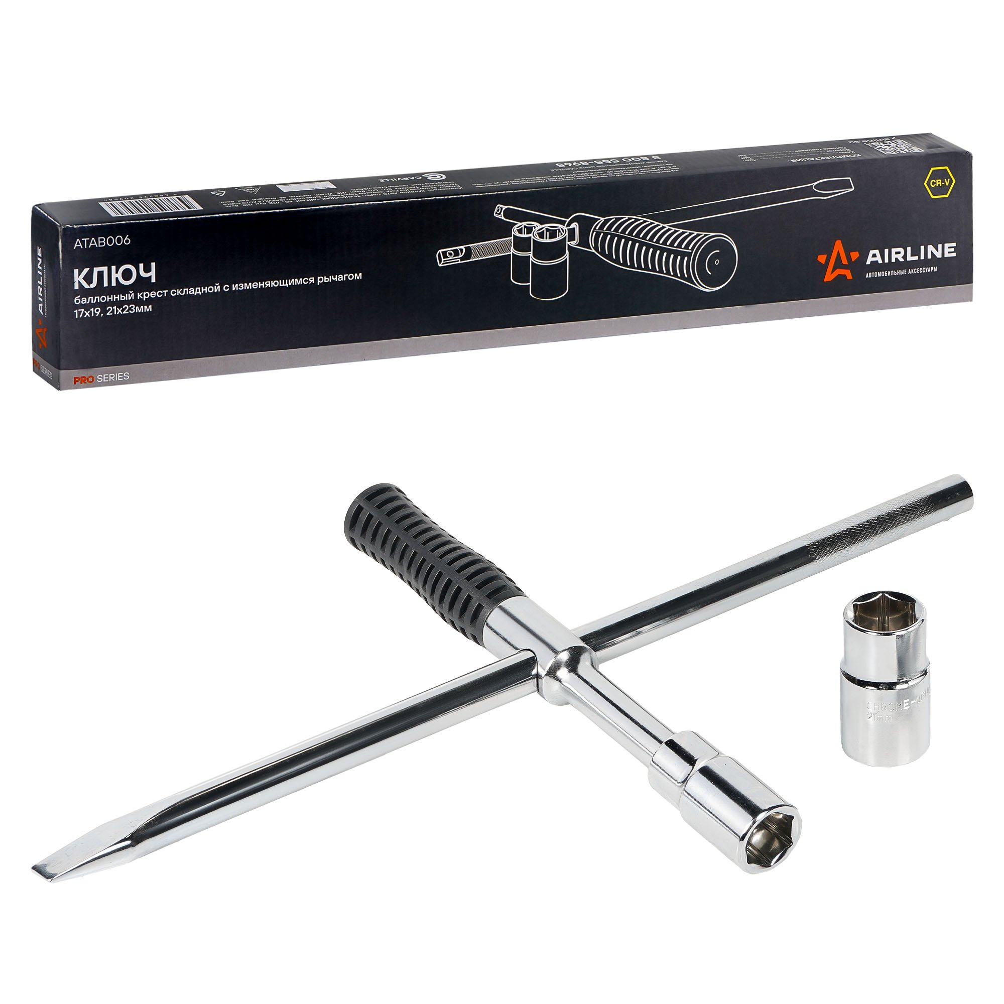 ATAB006 AIRLINE Ключ баллонный крестовой (17, 19, 21, 23) "AIRLINE" PRO (складной, с изменяющимс