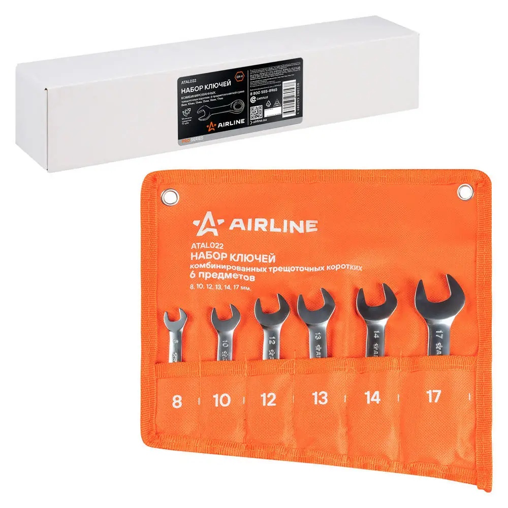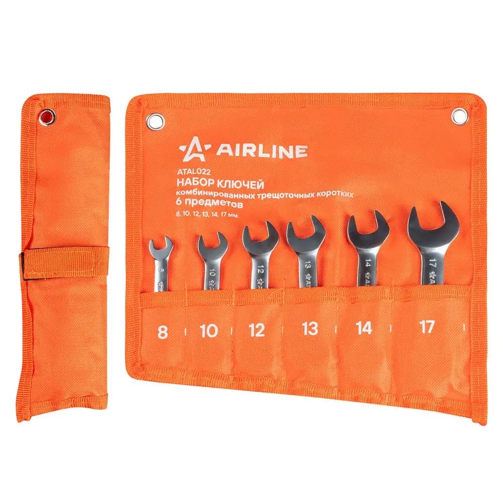 ATAL022 AIRLINE Набор ключей комбинированных трещоточных PRO 6пр. коротких (8-17мм) сумка (ATAL0