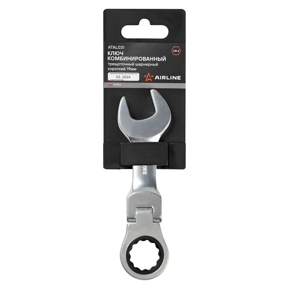 ATAL031 AIRLINE Ключ рожково-накидной трещоточный шарнирный (19) "AIRLINE" PRO