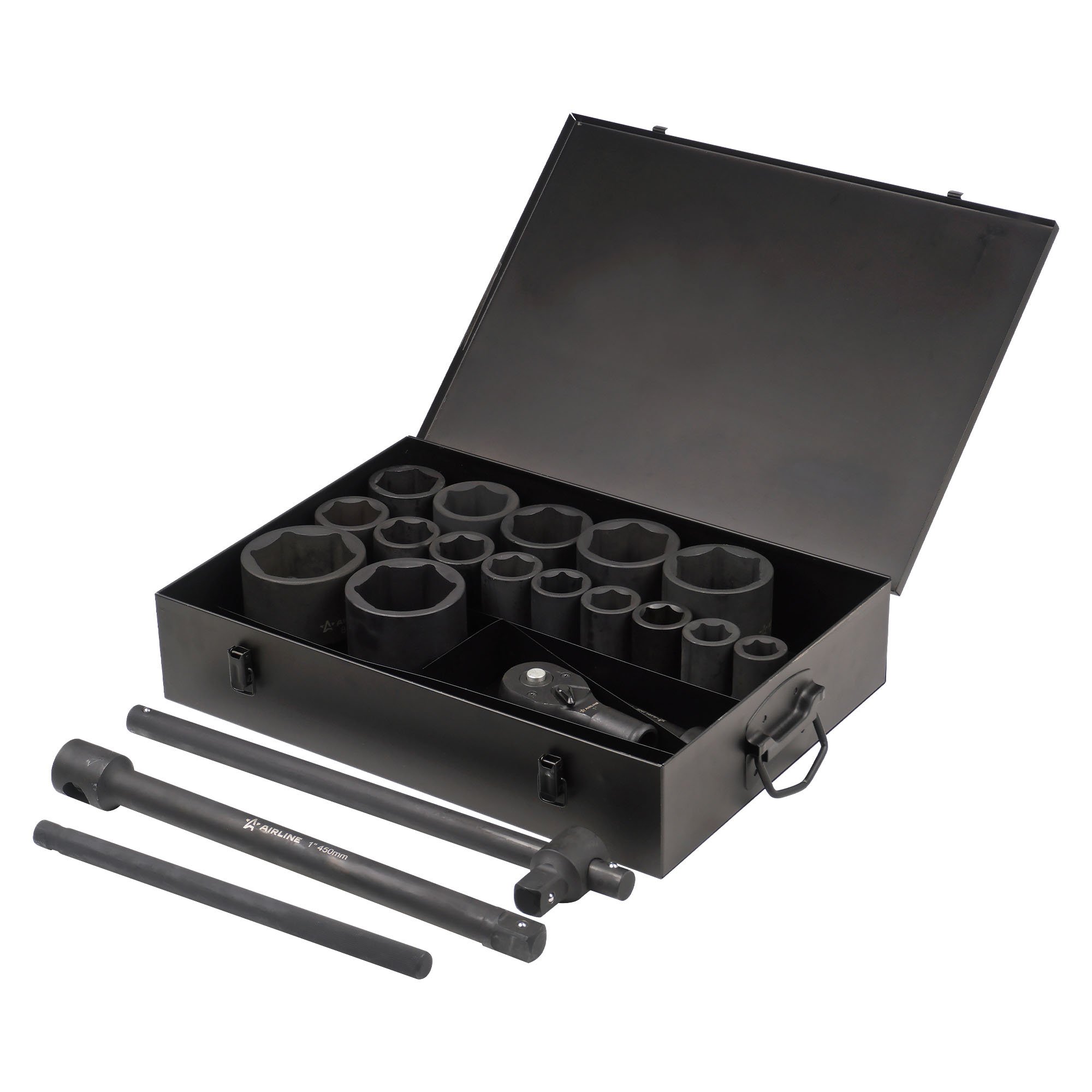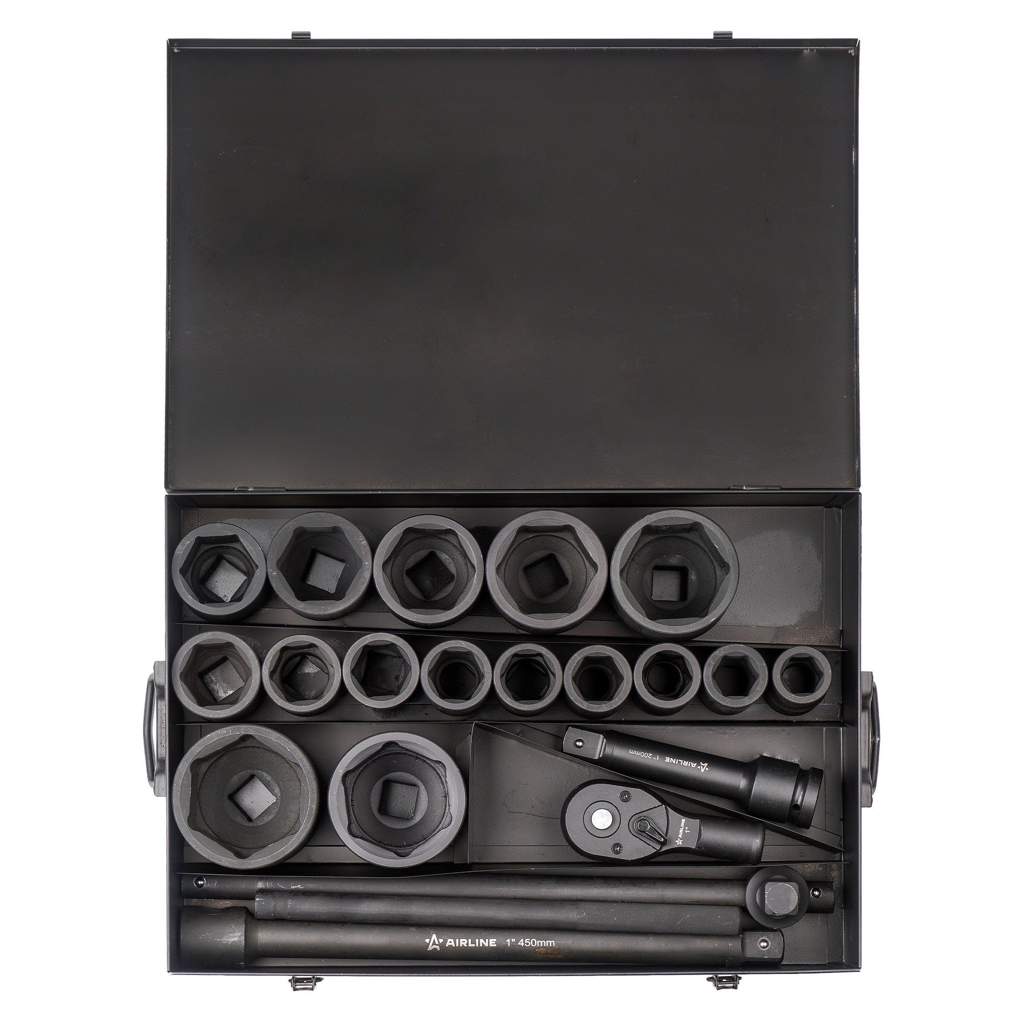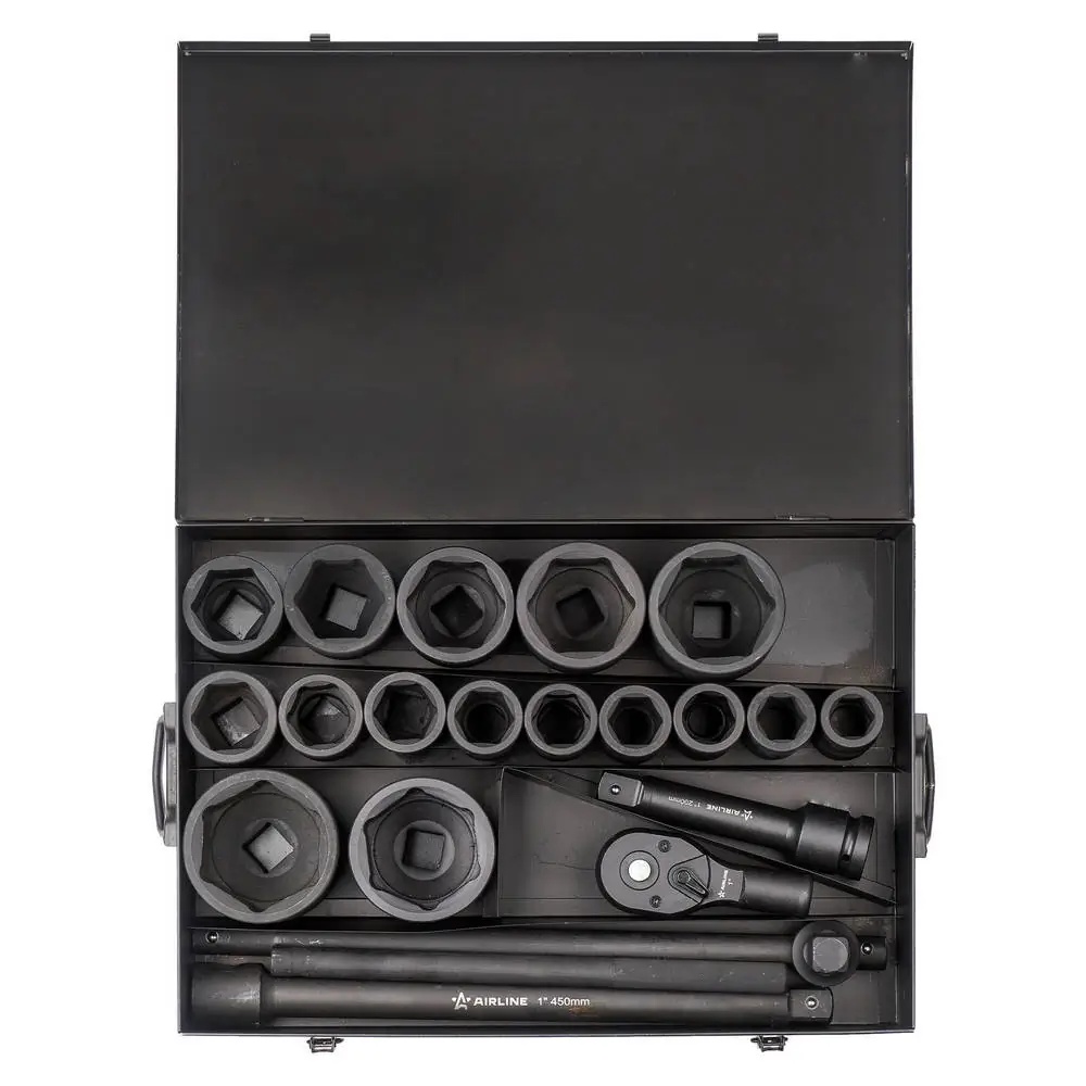 ATAS068 AIRLINE Набор головок ударных 1 90мм 20 пр. (27-80мм, Т-вороток, трещотка, удлинитель) м