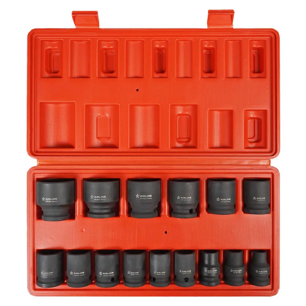 ATAS076 AIRLINE Набор головок ударных (15 предметов) "AIRLINE" (1/2"DR L=38 мм) (10-32 мм) кейс