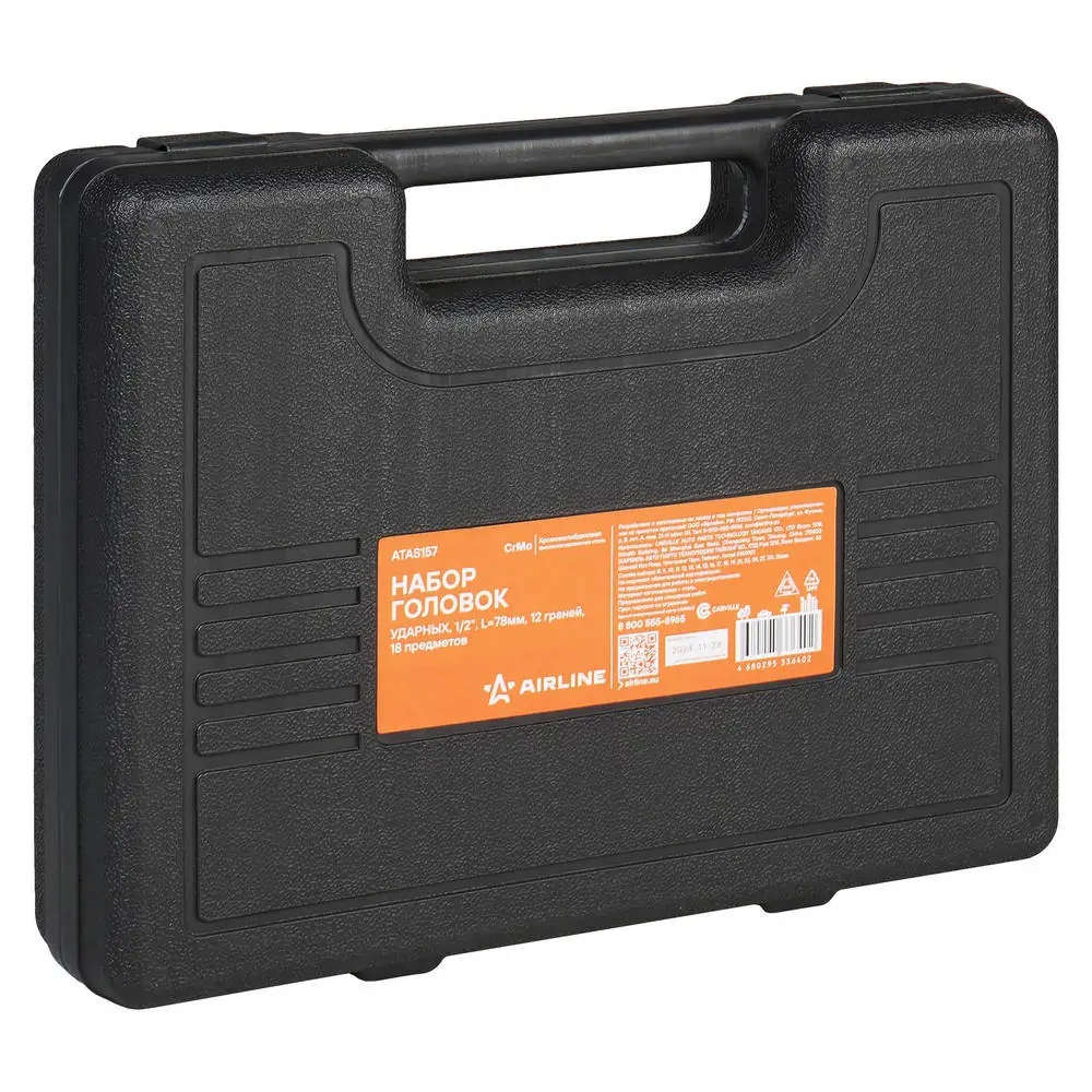 ATAS157 AIRLINE Набор головок ударных 1/2 DR L=78мм, 12гр. 18пр. (8-32мм) пласт.кейс. (ATAS157)