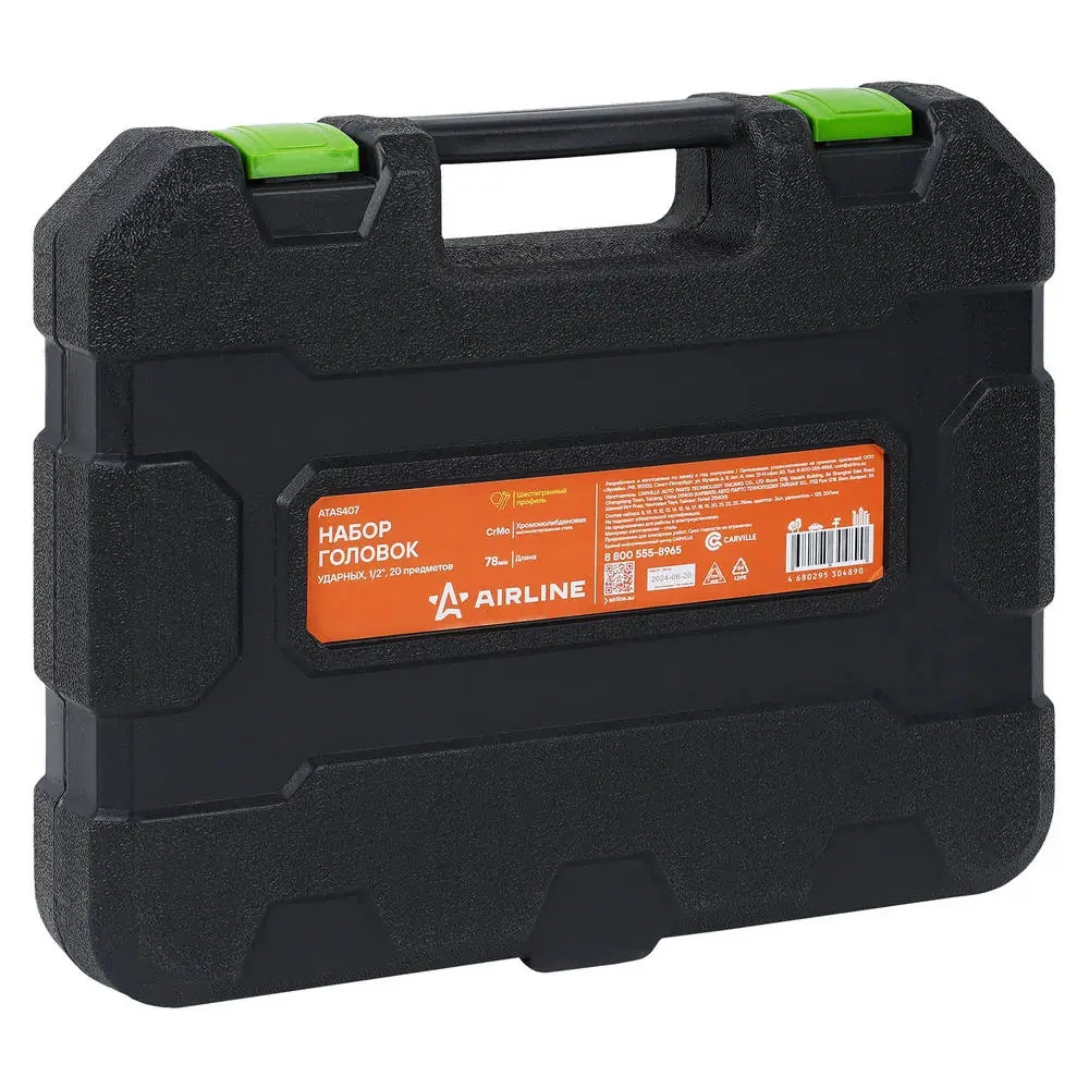 ATAS407 AIRLINE Набор головок ударных 1/2DR L=78мм, 20пр. (8-24мм) пласт.кейс (ATAS407)