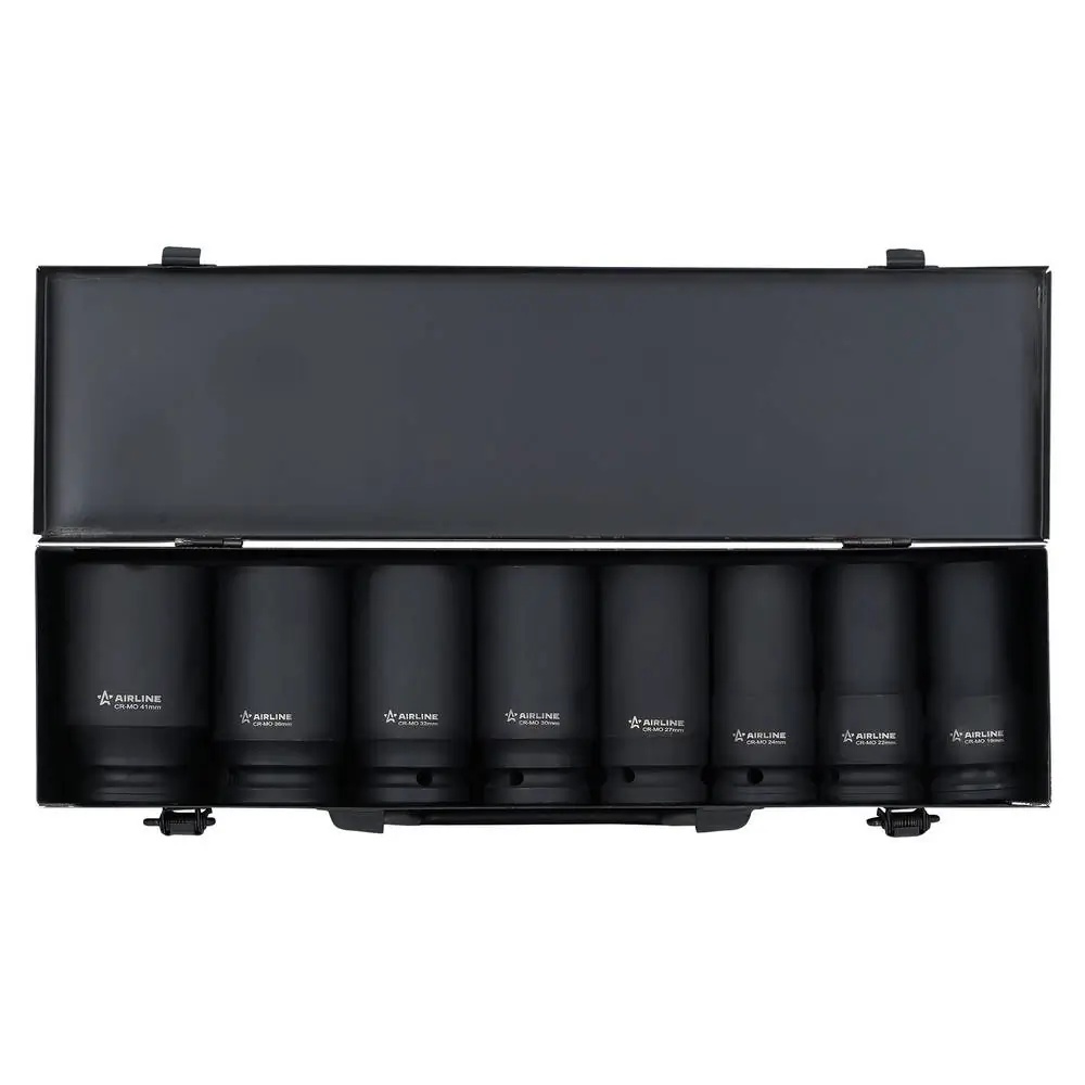 ATAS418 AIRLINE Набор головок ударных 3/4DR L=90мм, 8пр. (19-41мм) металл.кейс (ATAS418)