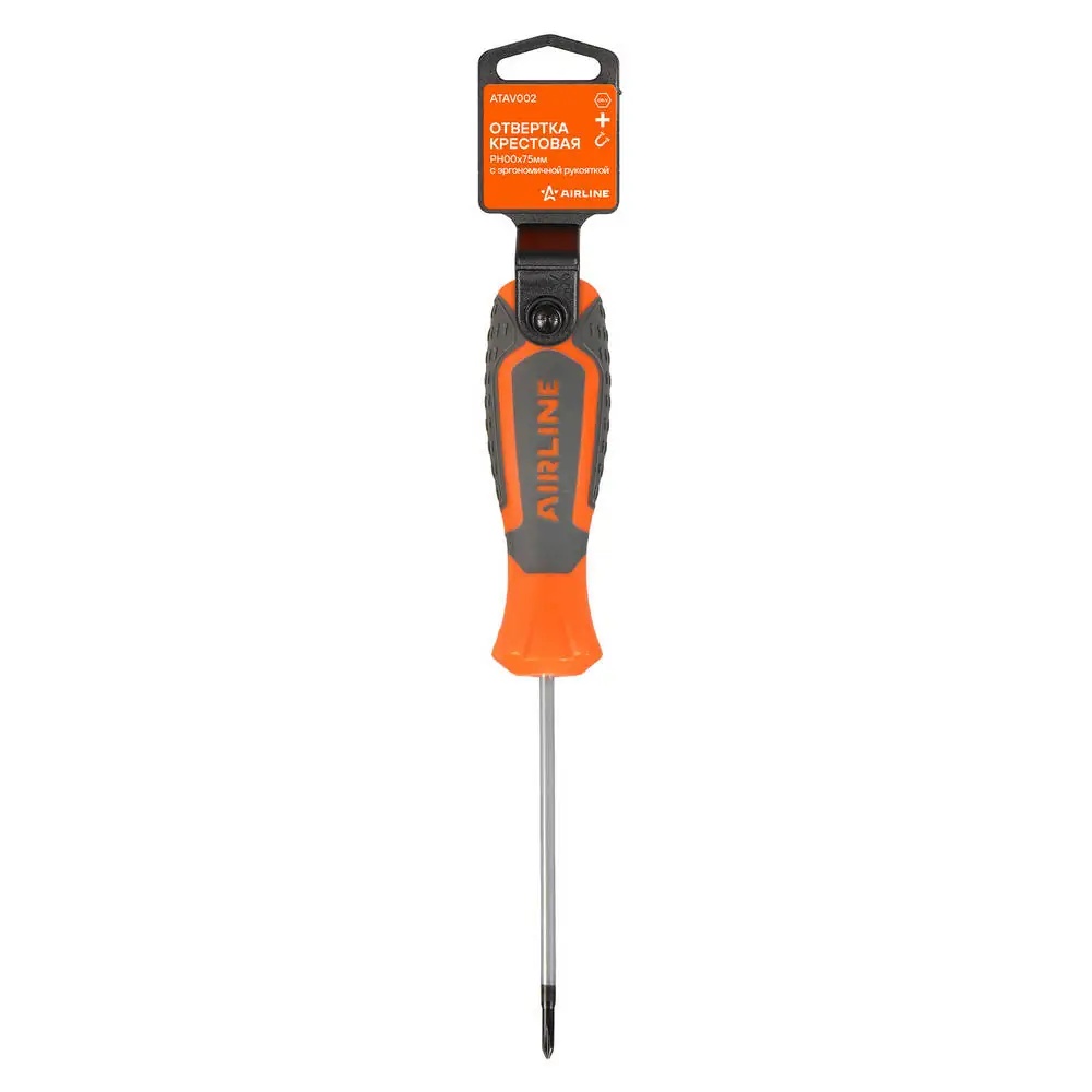 ATAV002 AIRLINE Отвертка крестовая PH00x75мм с эргономичной рукояткой магнитная, пласт.подвес (A