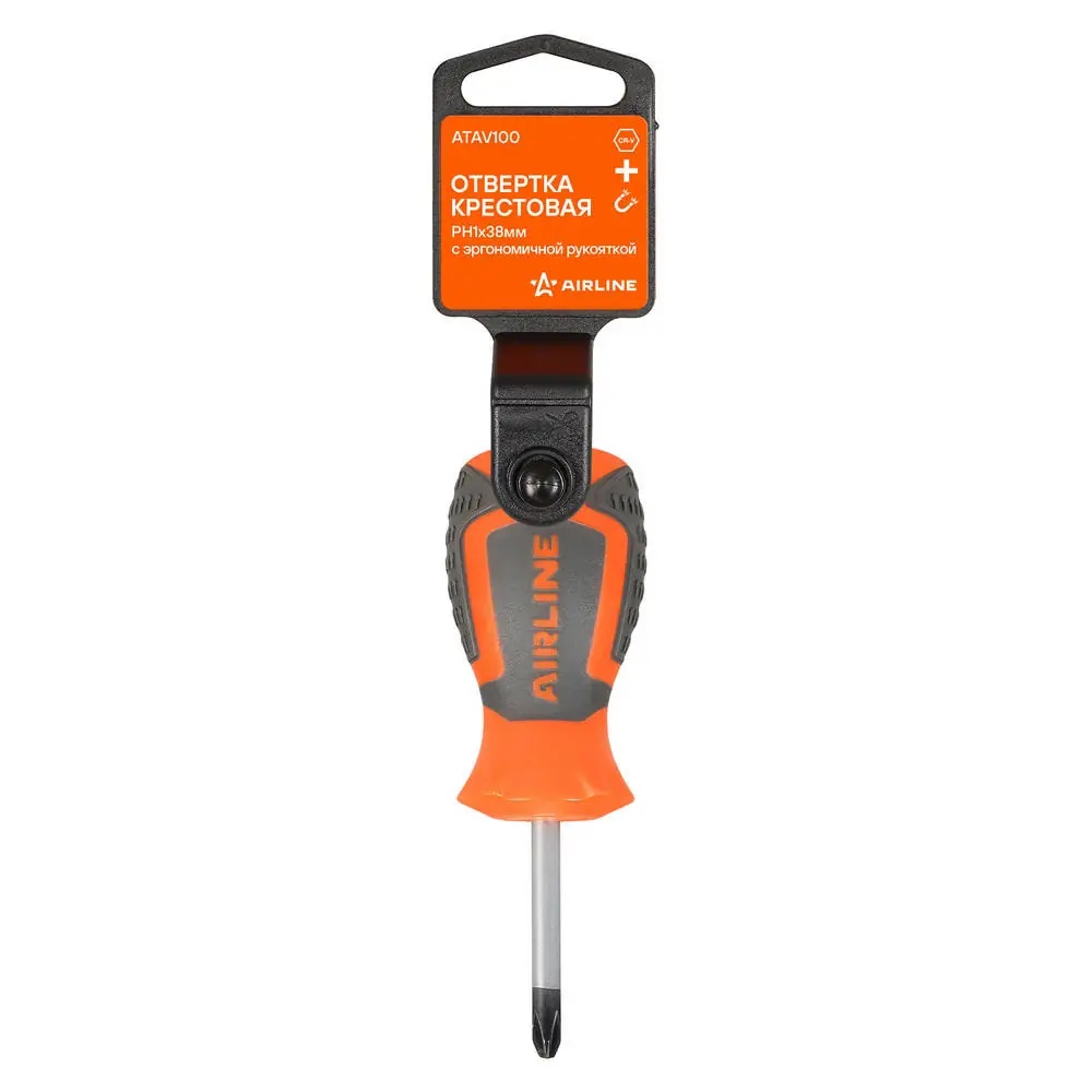 ATAV100 AIRLINE Отвертка крестовая PH1x38мм с эргономичной рукояткой магнитная, пласт.подвес (AT