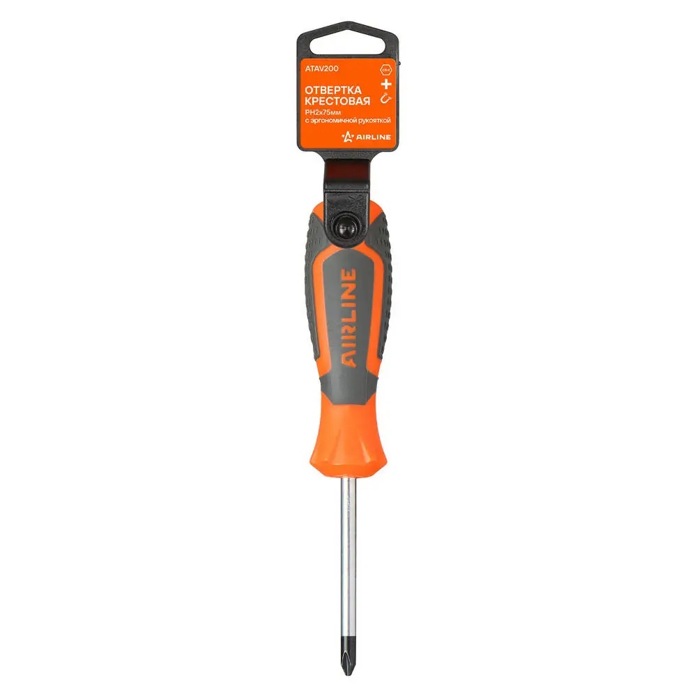 ATAV200 AIRLINE Отвертка крестовая PH2x75 мм "AIRLINE (магнитный наконечник) пласт.подвес