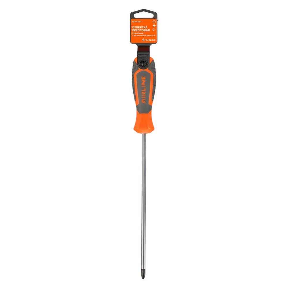 ATAV202 AIRLINE Отвертка крестовая PH2x200мм с эргономичной рукояткой магнитная, пласт.подвес (A