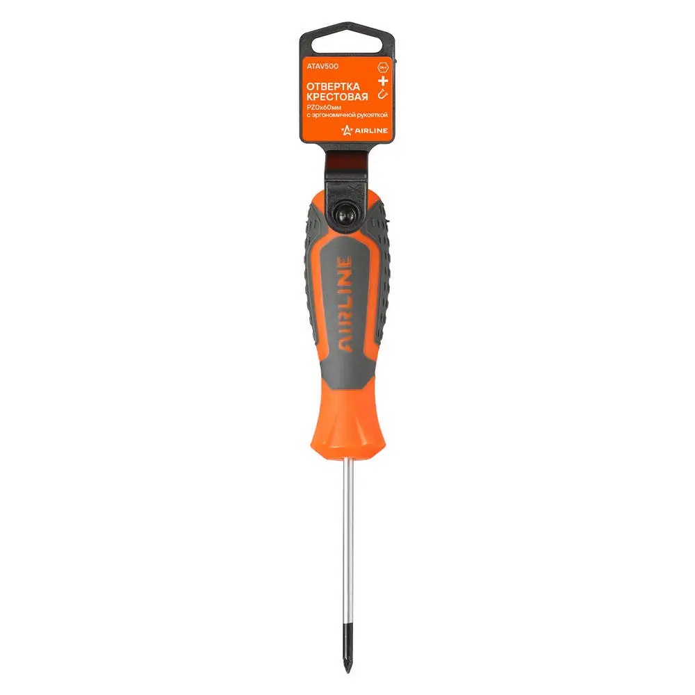 ATAV500 AIRLINE Отвертка крестовая PZ0x60мм с эргономичной рукояткой магнитная, пласт.подвес (AT