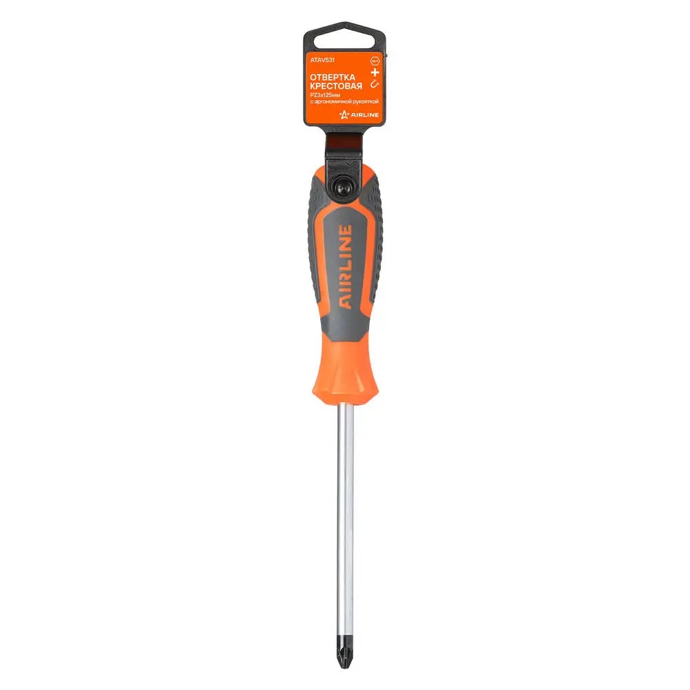 ATAV531 AIRLINE Отвертка крестовая PZ3x125мм с эргономичной рукояткой магнитная, пласт.подвес (A