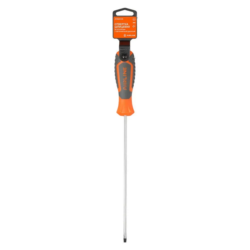 ATAW034 AIRLINE Отвертка шлицевая SL3.0x150мм с эргономичной рукояткой магнитная, пласт.подвес (