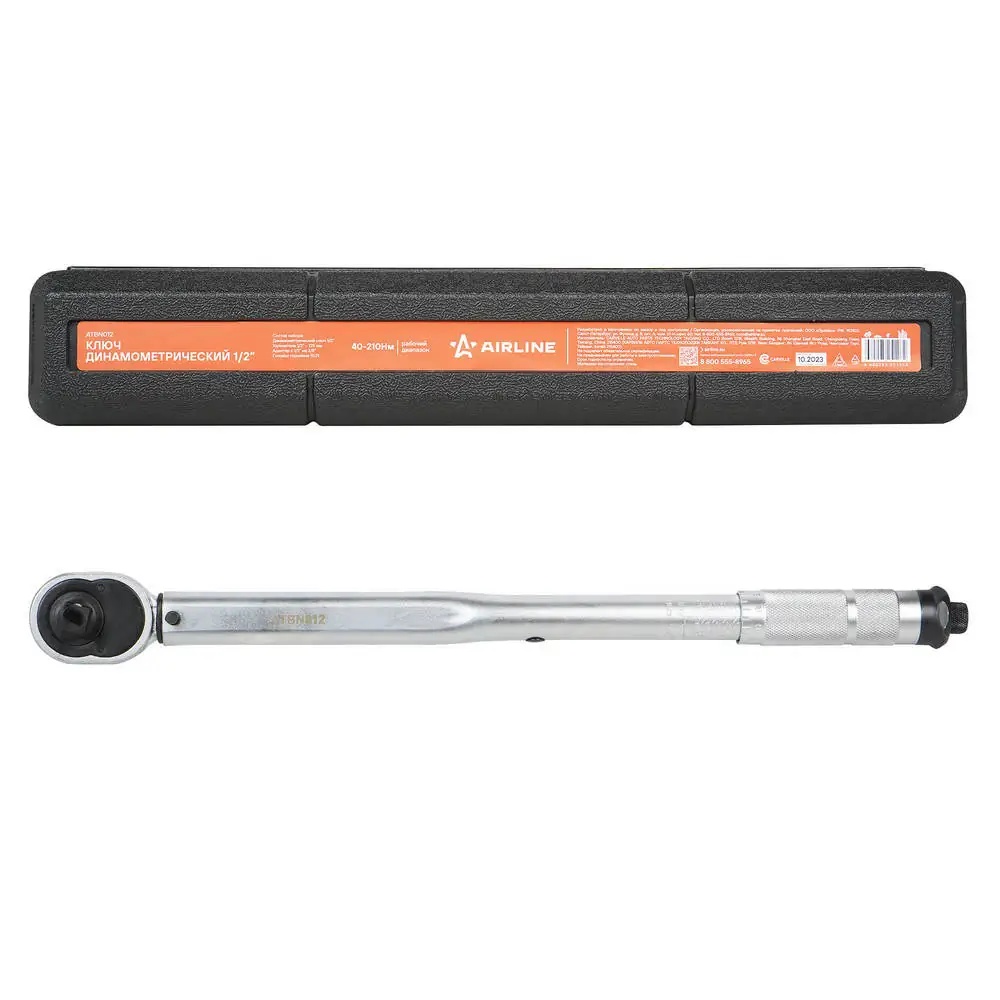 | Наименование | Ключ динамометрический 1/2" 40-210 Нм предельный "AIRLINE" 4 предм. (головки 19, |
