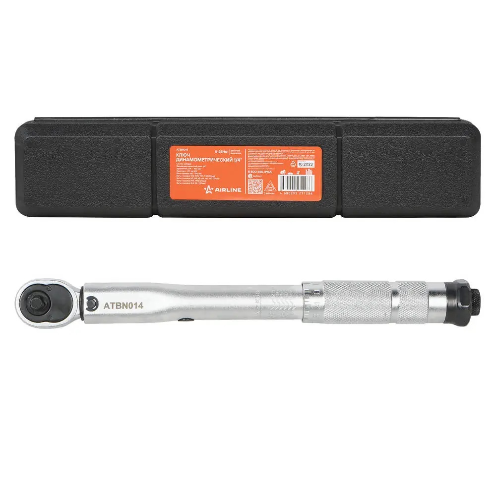 | Наименование | Ключ динамометрический 1/4" 5-25 Нм предельный "AIRLINE" (удл. 100 мм, биты, дер |