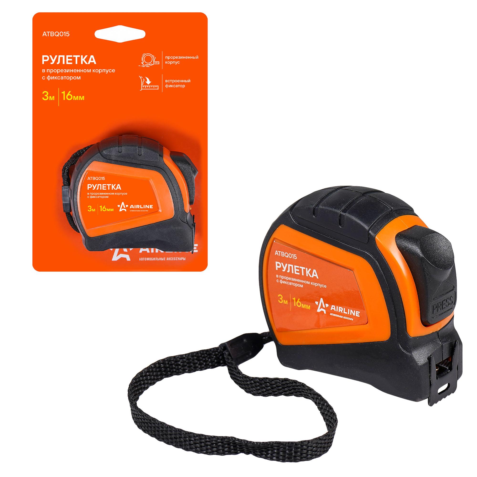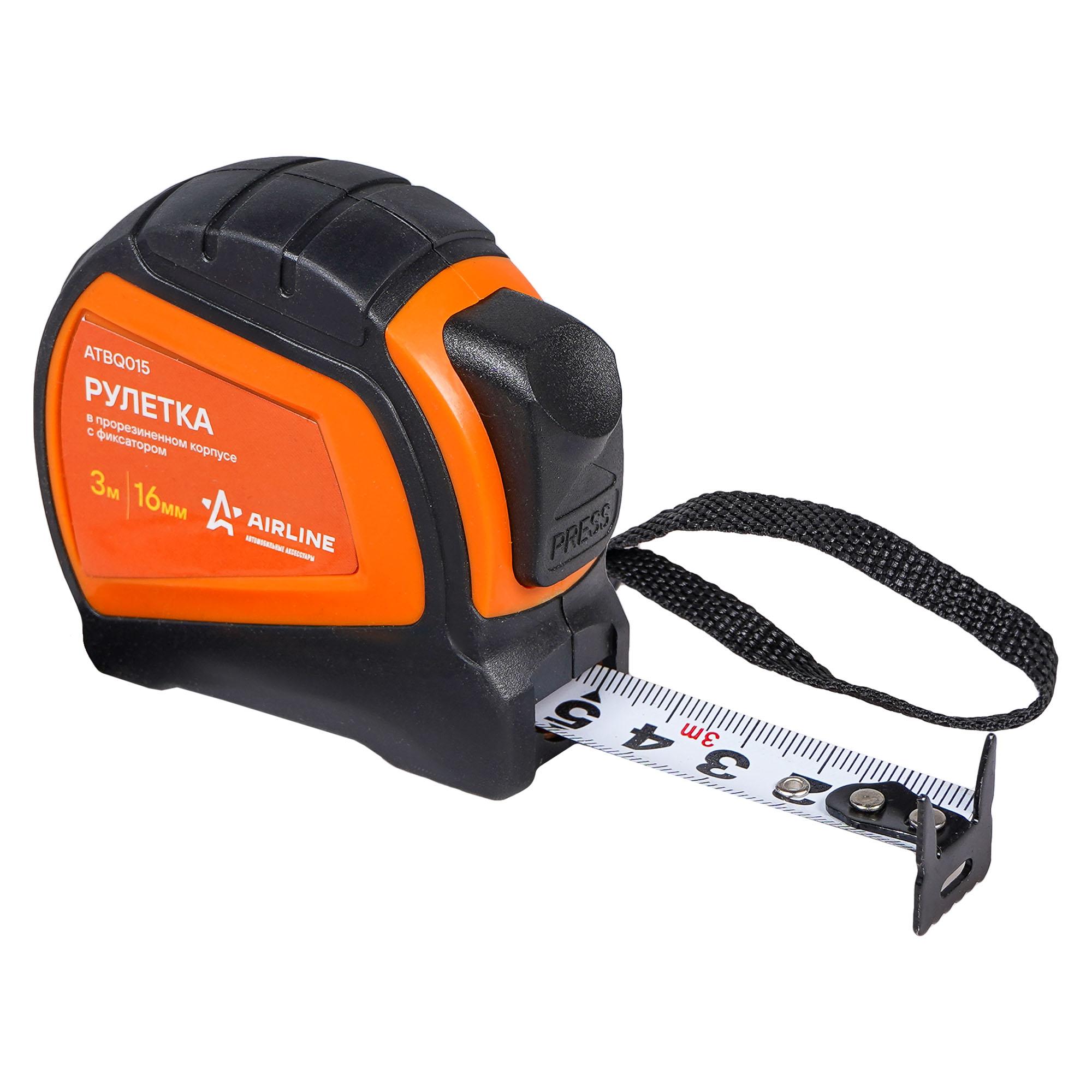 ATBQ015 AIRLINE Рулетка AIRLINE 3 м х 16 мм PRO (автостоп, дв. зацеп, дв. шкала) в прорезиненном