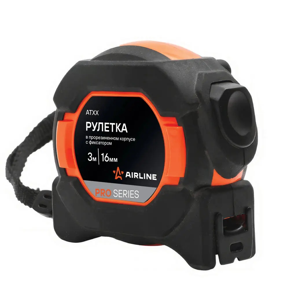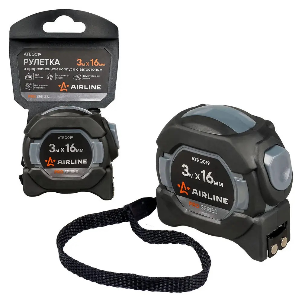 ATBQ019 AIRLINE Рулетка AIRLINE 3 м х 16 мм PRO (автостоп, магнит. зацеп, нейлон. двуст. Шкала)
