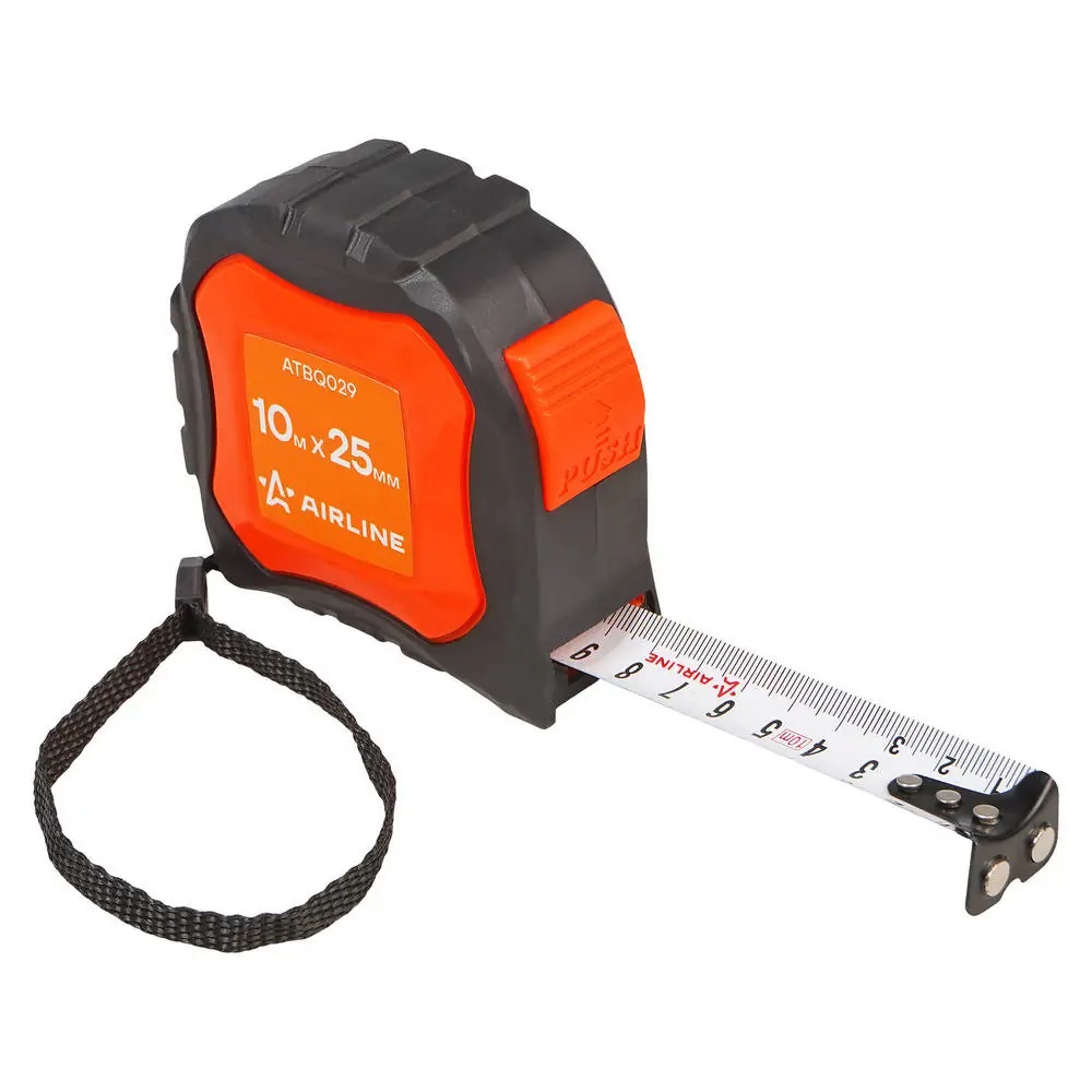 ATBQ029 AIRLINE Рулетка в прорезиненном корпусе 10мх25мм, автостоп, магнитный зацеп (ATBQ029)